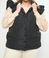 Introducing the Ruffle Puffer Vest by Entro, a stylish addition to your travel wardrobe in minimalist solid black. This vest features short sleeves and a collared neckline with a quilted ruffle detail on the shoulders for an elevated look. Its snap closure and convenient side pockets make it both functional and fashionable for the winter season. Perfectly lined for comfort, this vest pairs effortlessly with your favorite casual outfits.
