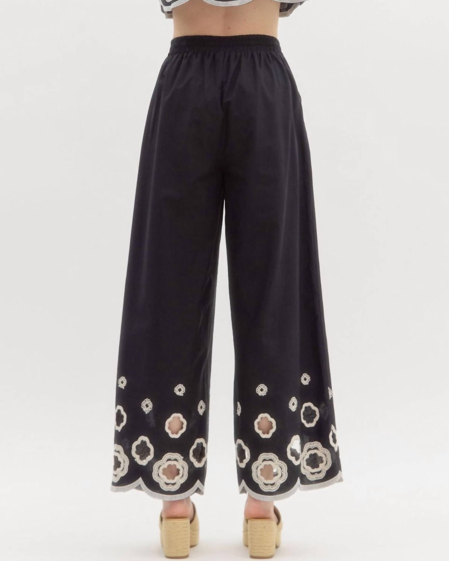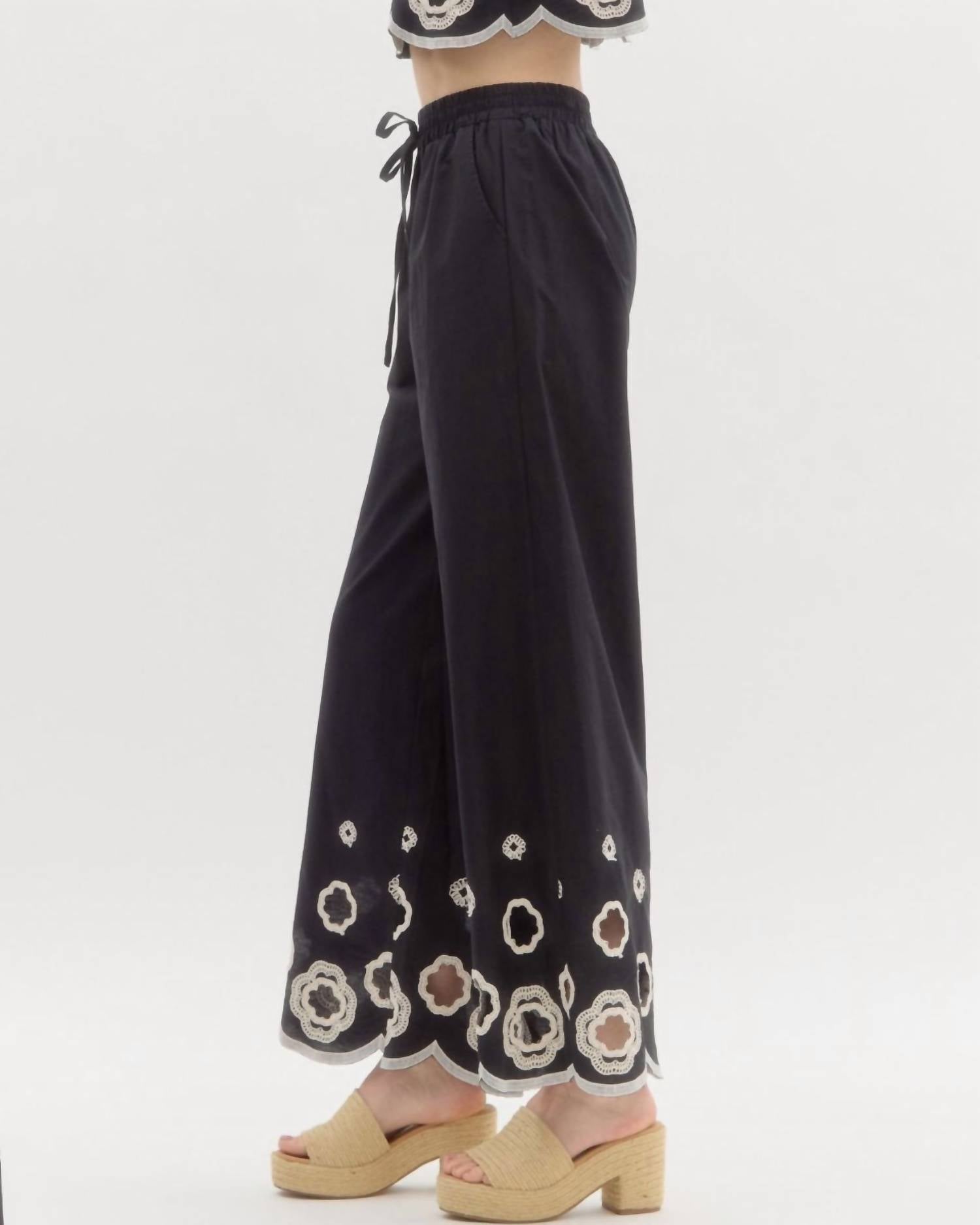 Entro - Scallop Embroidered Hem Wide Leg Pants