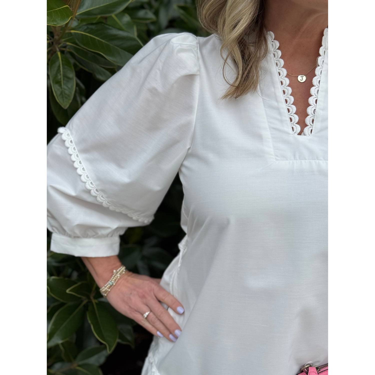 A short and breezy dress for those warmer days. Discover the Selena V-Neck 3/4-Sleeve Mini Dress by Entro, a timeless piece in classic white that's perfect for any occasion. Featuring three-quarter sleeves, this elegant dress is crafted from an 80% Cotton and 20% Polyester blend, offering a refined silhouette with a scallop trim and a removable belt. With practical side pockets and a solid V-neck design, it blends comfort and sophistication effortlessly. Care for this dress by hand washing in cold water and line drying, ensuring it maintains its minimalist charm for seasons to come.