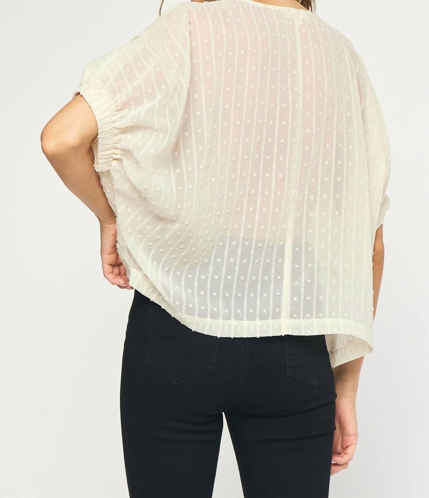A versatile blouse that works from desk to dinner! Introduce a touch of glamour to your wardrobe with the Sequin Short Sleeve Round Neck Top by Entro, crafted in a chic cream hue. This blouse boasts a stylish patterned design and a crewneck, with a dotted swiss contrast at the back for added texture. Made of 100% polyester, it features short sleeves and a pull-on closure, with a garment length of 22 inches for a flattering fit. Whether for a daytime occasion or a night out, this semi-sheer, lightweight top adds an elegant flair to any ensemble.
