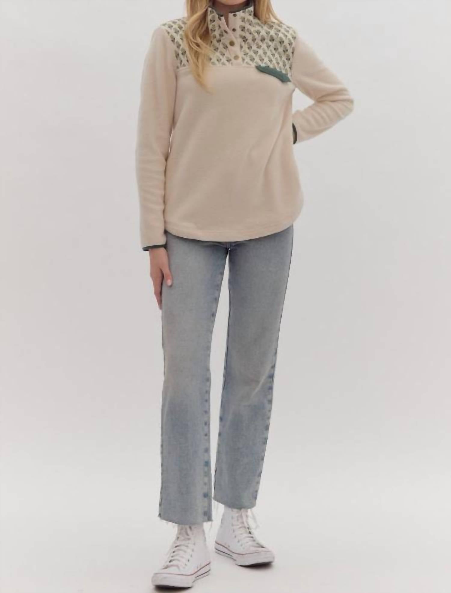 Cozy solid beige pullover. Long sleeve turtleneck design. Crafted from 100% polyester. Pull-on closure. Slim fit ideal for layering.