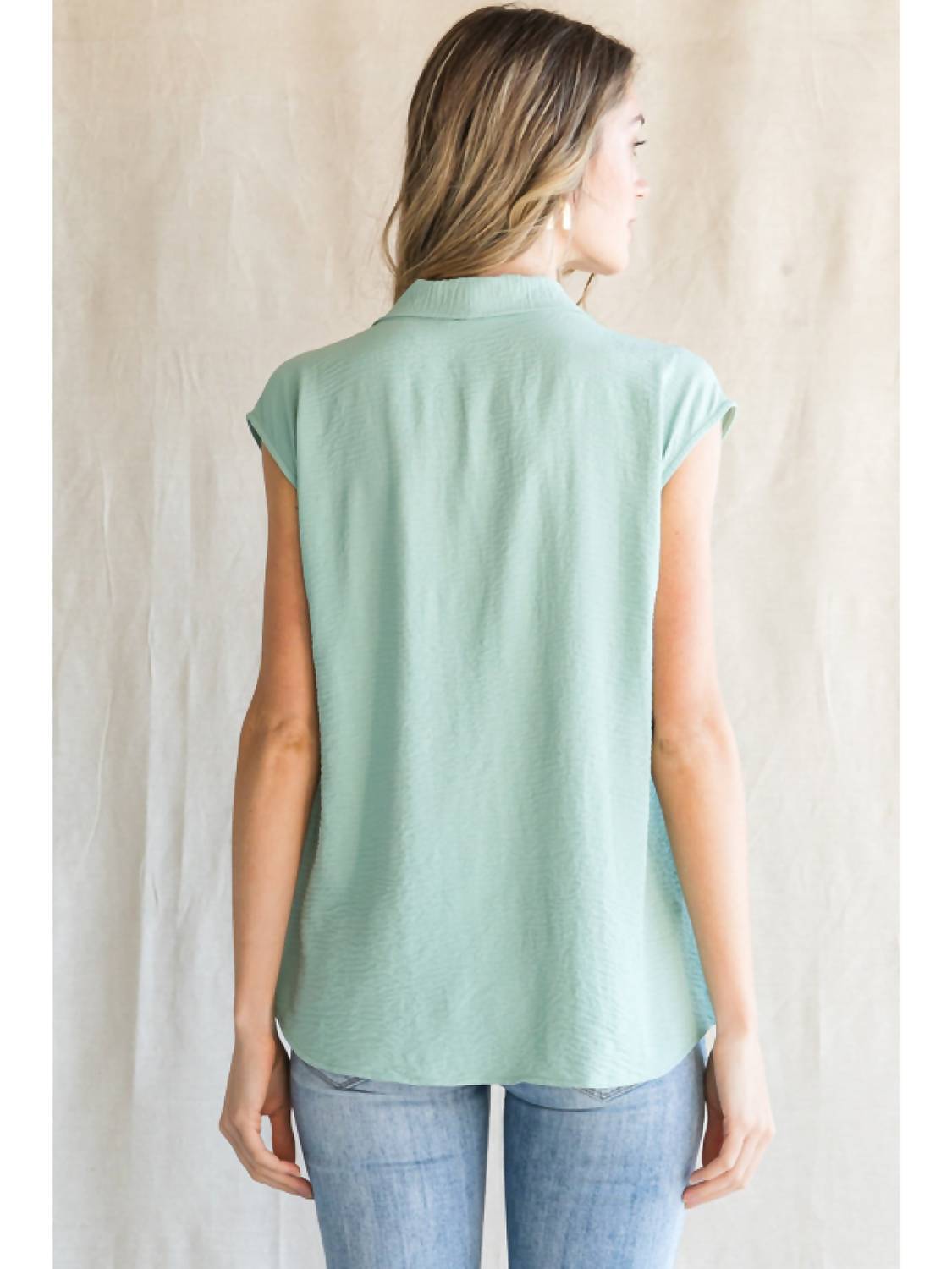 Pair this with your favorite jeans and slides for your next girls night out. Crafted from 100% polyester, this solid-patterned blouse boasts a lapelless neck and features a curved shoulder and hemline for a modern silhouette. With a pull-on closure, it is unlined, non-sheer, and lightweight, ensuring comfort and ease of wear. This garment has a length of 24.5 inches for size small, providing a perfect fit for various occasions. Model is 5'8" and is wearing a size Small.