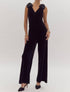 Step into elegance with the Entro Black Velvet Jumpsuit, featuring a captivating sleeveless design. This wide-leg jumpsuit is crafted from 100% polyester velvet, showcasing big sequin bow details on the shoulders for a touch of drama. Enjoy the easy zip closure at the back, lined for your comfort.