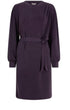 Introducing the ESQUALO Women's Gathered Modal Dress, an embodiment of quiet luxury in dark purple. This mini dress features long sleeves and is crafted from a blend of 48% Modal, 48% Polyester, and 4% Elastane, ensuring softness and comfort. Designed with a crewneck and an A-line silhouette, it is perfect for a holiday party or Thanksgiving gathering. The dress is pull-on, with non-creasing quality fabric that makes it ideal for travel; care involves machine wash.