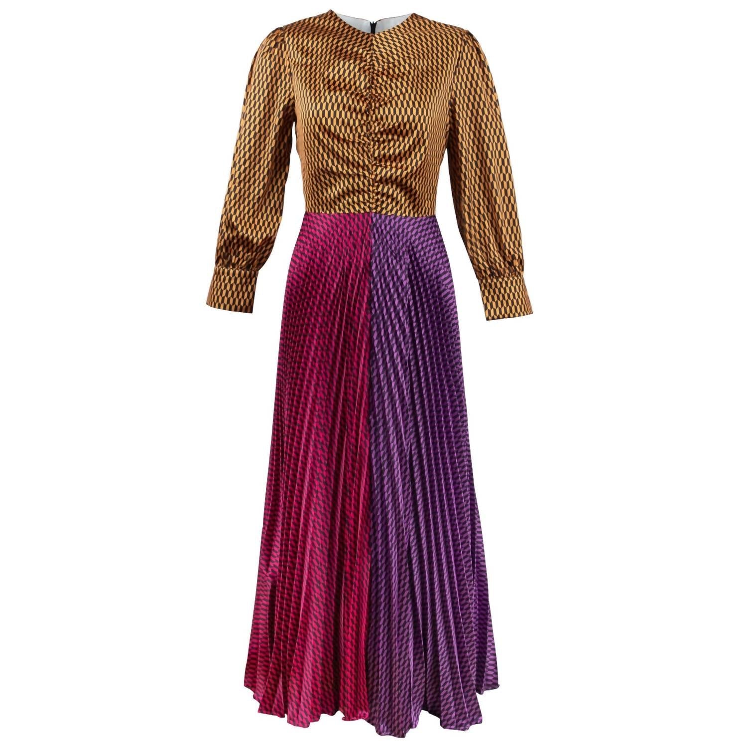 A maxi dress that is just as cute as it is comfortable. Introducing the Cailyn Color Block Dress by Esteem Couture, a dazzling ensemble designed for springtime celebrations. This women's maxi dress features a fit and flare silhouette with long sleeves, a ruched top, and a stylish crewneck. The multicolor patterned design and pleated skirt make a bold statement, ideal for holiday parties and New Year's Eve outings. Crafted with a zipper closure, it's tailored for a fashion-forward, confident look.