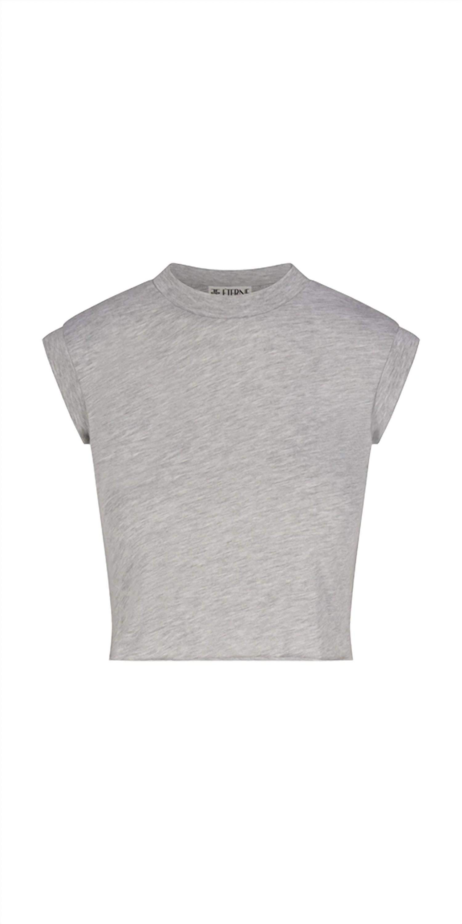 Elevate your wardrobe with Éterne's Cropped Muscle Tank, designed in a chic heather grey hue. This sleeveless piece features a crewneck and is meticulously crafted from a blend of 48% cotton, 48% modal, and 4% spandex, providing a comfortable slim fit with a stylish cropped length. The pull-on closure adds convenience to its relaxed, vacation-ready style. With its solid pattern, this tank is a versatile addition to your summer clothing collection.