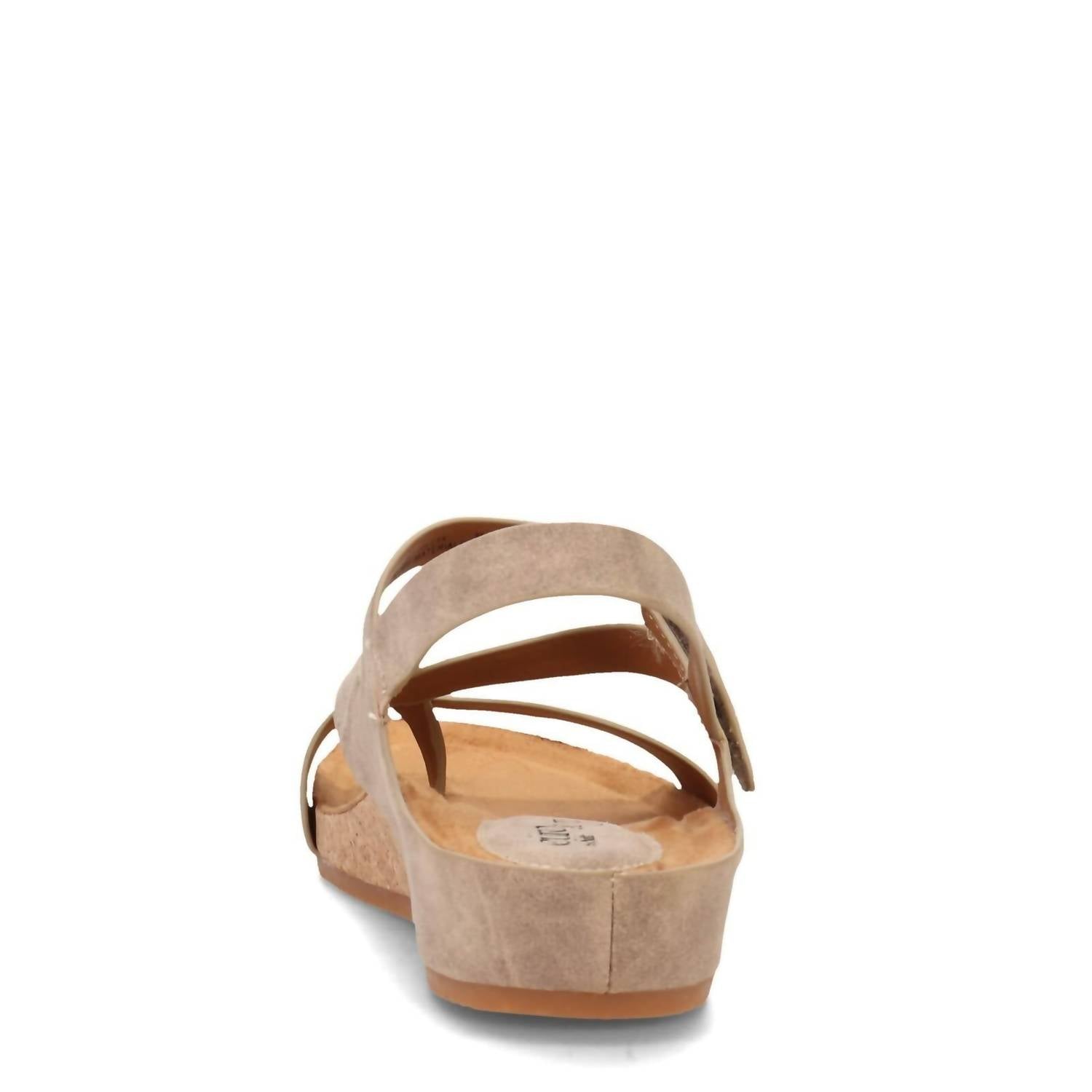 Classicly cute and all-day-wearable. We love this sandal. Step into effortless style with the Women's Gianetta Sandal by Eurosoft, perfect for any holiday party or summer occasion. Featuring a strappy design with asymmetrical upper detailing, this sandal comes in a chic Stone Taupe color and offers a round toe for a timeless look. Designed for all-day comfort, it boasts a comfort channel footbed, breathable fabric cushion lining, and a lightweight, flexible outsole. Whether on vacation or attending a casual gathering, these sandals keep you stylish and comfortable throughout the day.