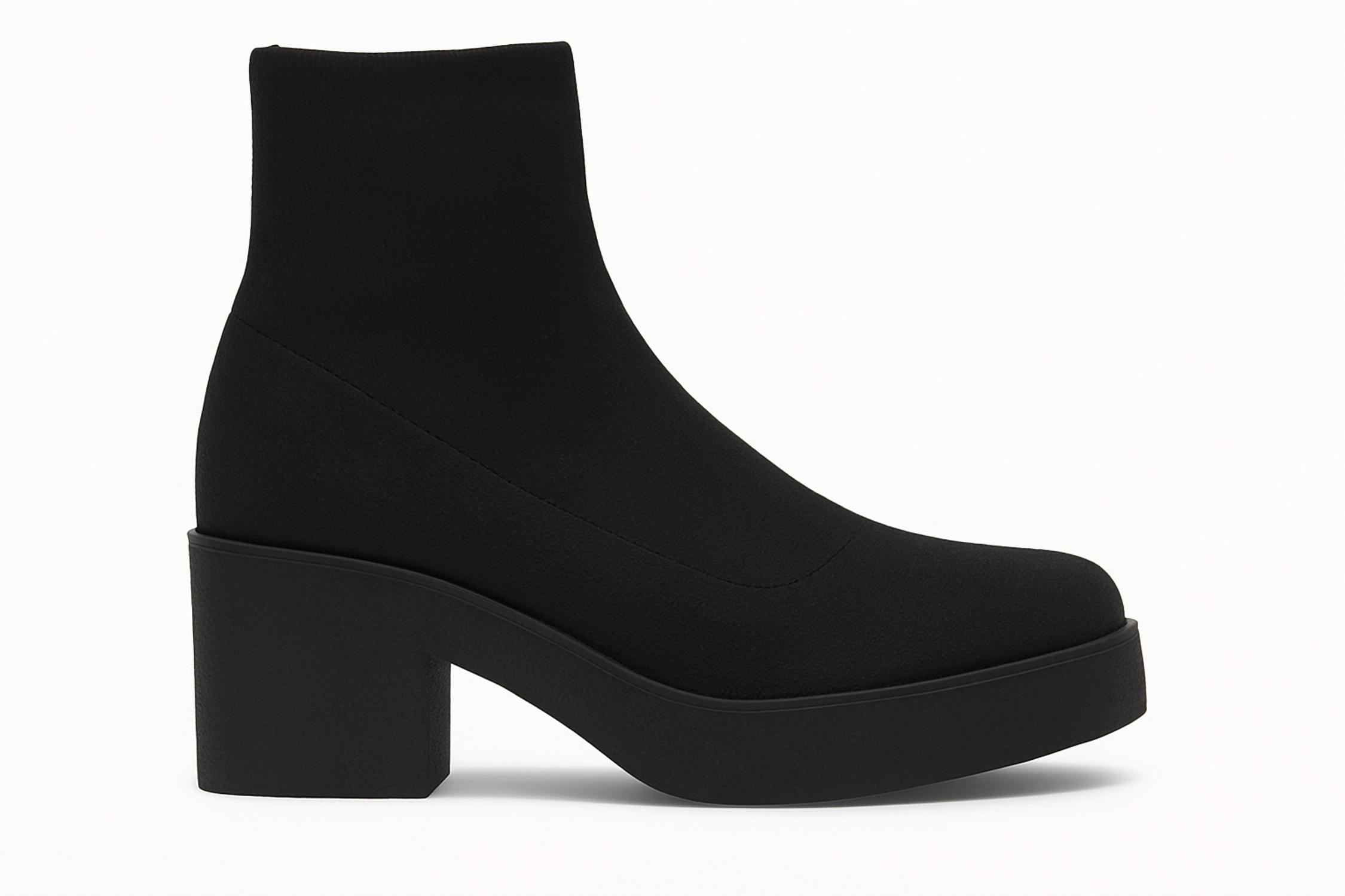 Say hello to the perfect, most versatile boot. The ankle height makes this style easily transition from day to night. Wear them with your favorite skinny jeans and tee for a more laid back look, or pair them with your favorite mini dress and jacket for a night out on the town. Discover the Women's Stretch Sock Knit Boots by Everglades, a stylish black bootie that embodies modern sophistication. Crafted with a sleek stretch knit upper, these boots contour to your foot, offering a streamlined fit, while the block heel provides both height and comfort. Ideal for pairing with denim, skirts, or sweater dresses, this versatile boot is a wardrobe staple.