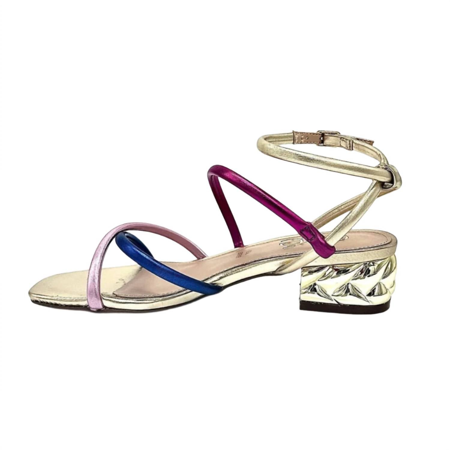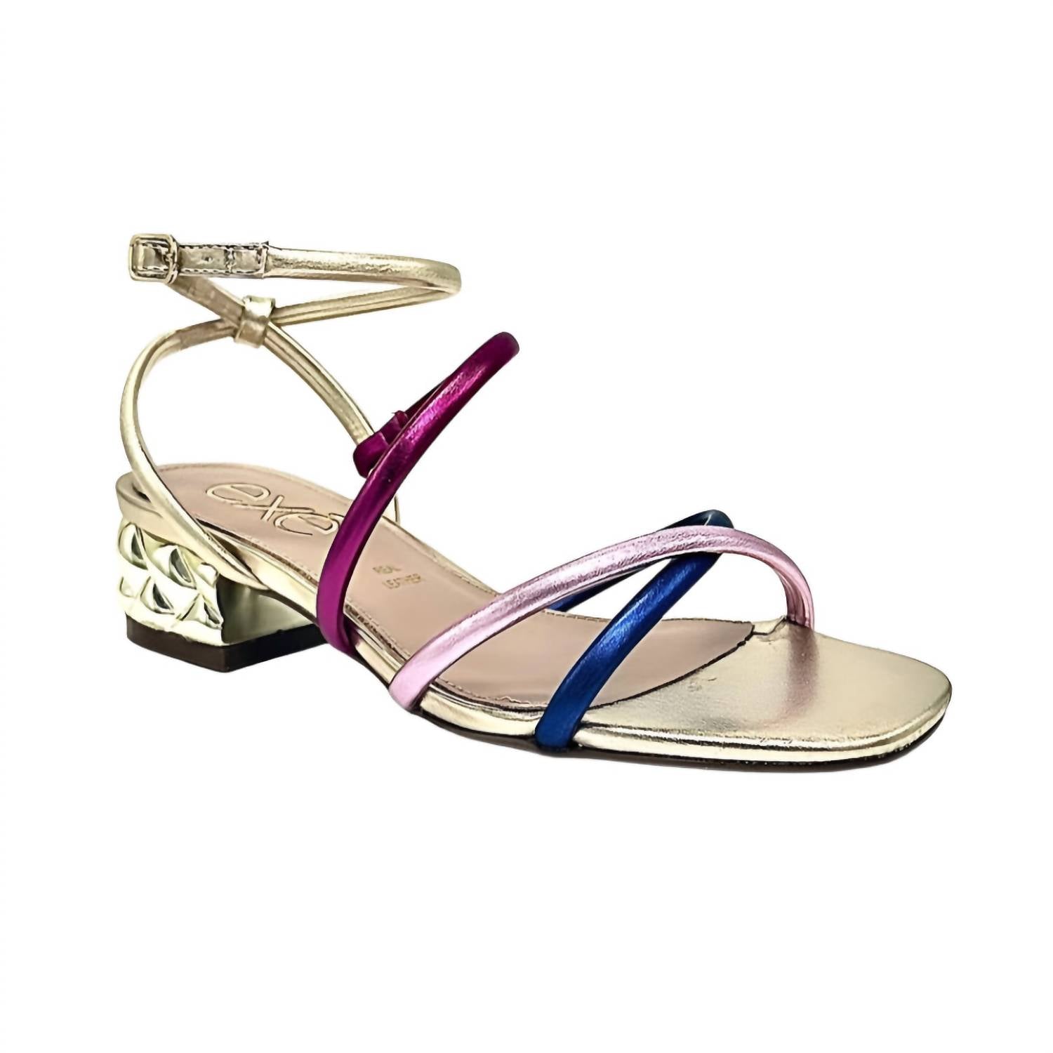 Introducing the Women's Katy-299 Strap Sandals by Exe, a vibrant multi-color dress sandal perfect for summer cocktail parties. These sandals feature a chic block heel and an open toe design, embodying the quiet luxury trend. Crafted with a comfortable leather insole, they offer both style and comfort. Please note these sandals are imported and ideal for adult women.