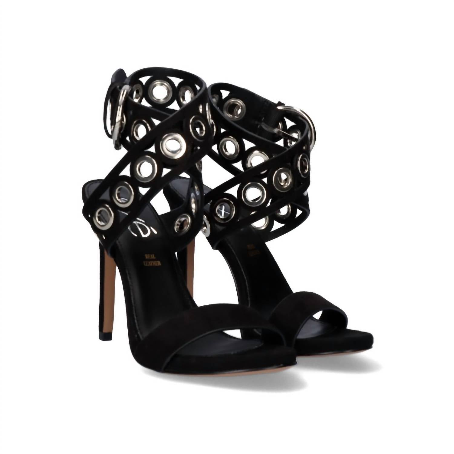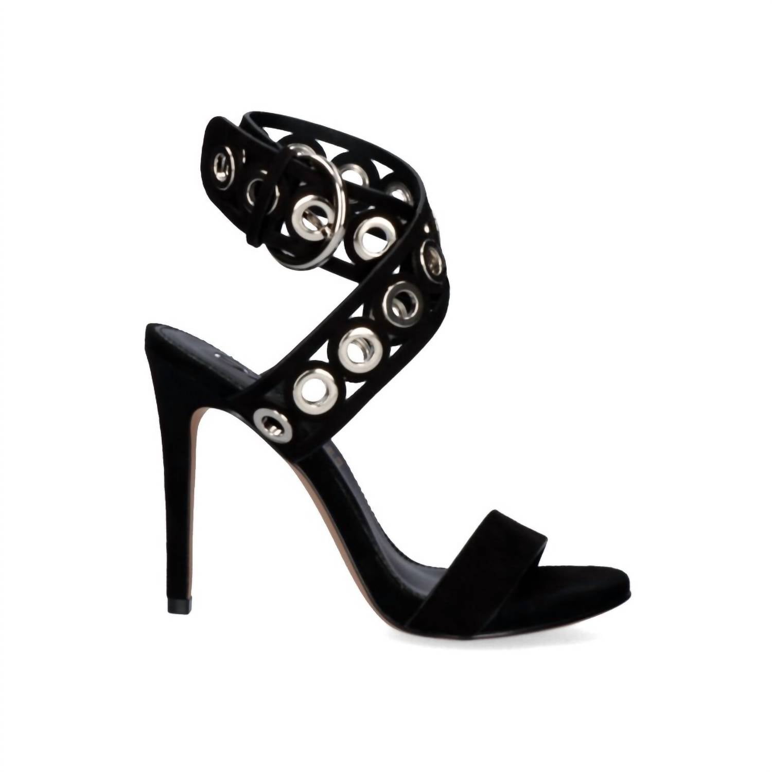 Flowy dresses, cropped pants, and even jumpsuits... this sandal works with them all! Step into summer elegance with the Women's Silvia-224 High Heels by Exe, perfect for engagement occasions. Featuring a stiletto heel and a chic peep-toe design, these beige sandals are crafted from high-quality synthetic material for durability and style. The ankle boasts two straps adorned with silver metallic decorations that crisscross, fastening with a silver buckle for a secure fit. Ideal for those seeking quiet luxury, these sandals seamlessly blend sophistication and modern allure.