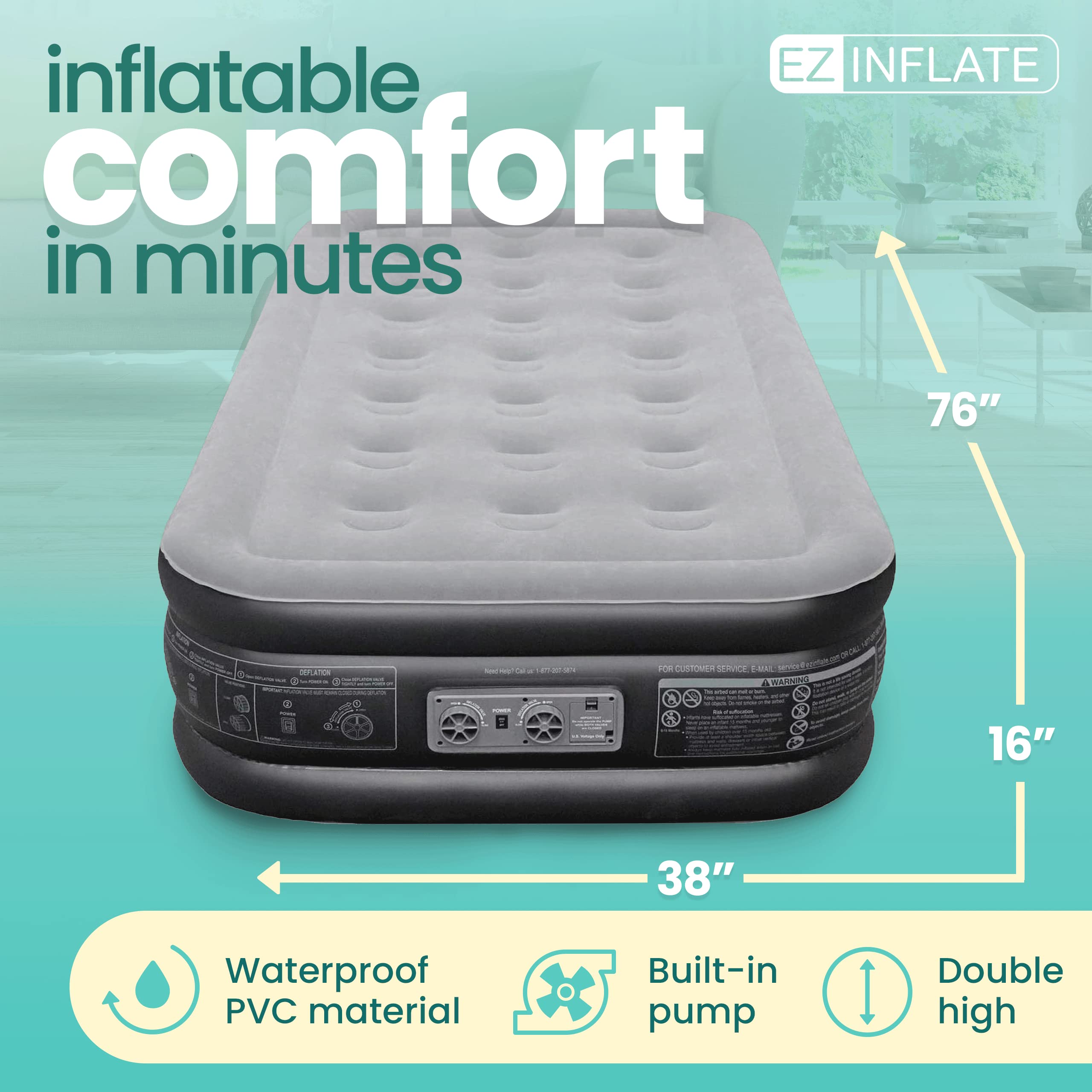 EZ INFLATE Double High Luxury Air Mattress with Built in Pump