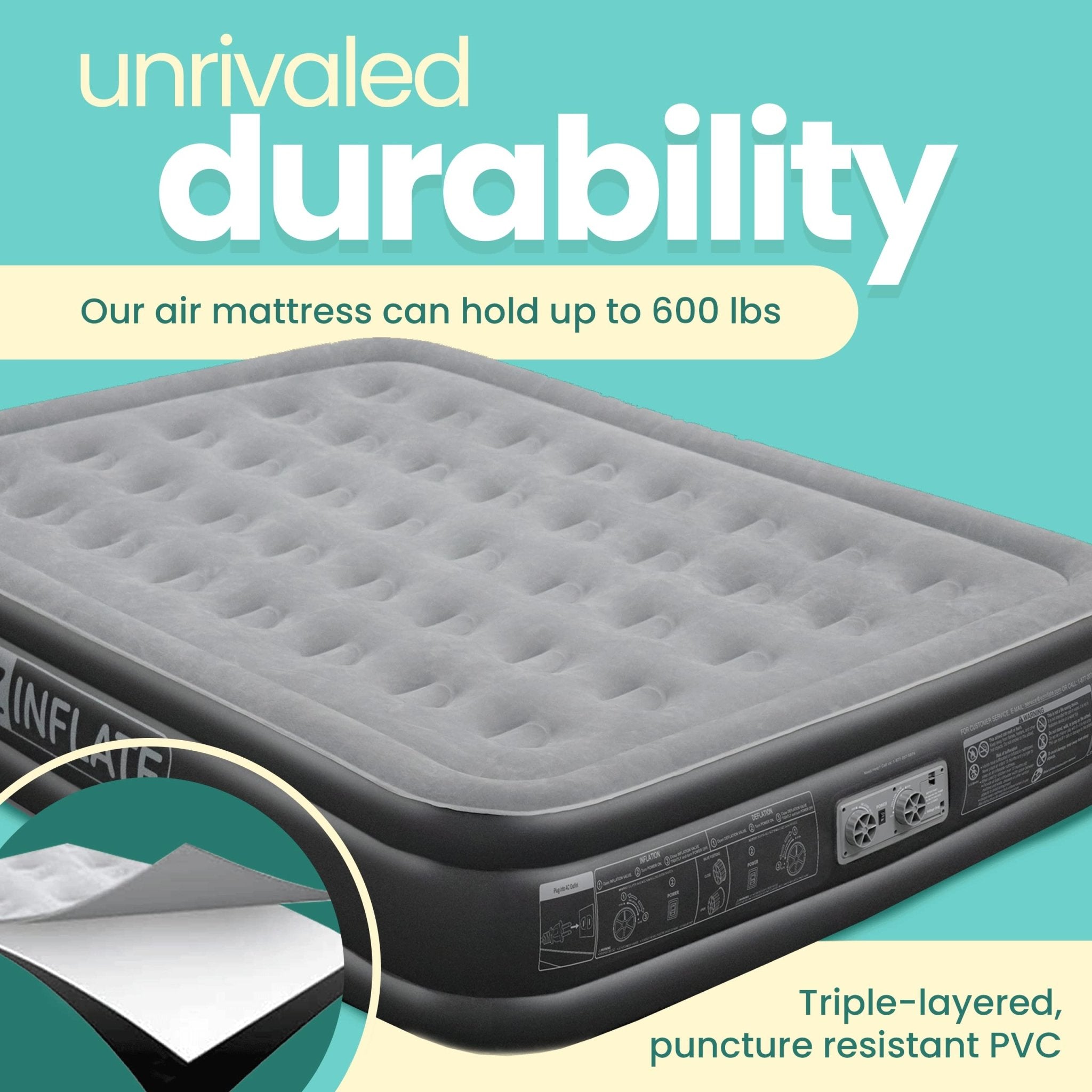 • WATERPROOF - Waterproof and puncture-resistant, our air mattress is made from triple-layered, durable PVC.