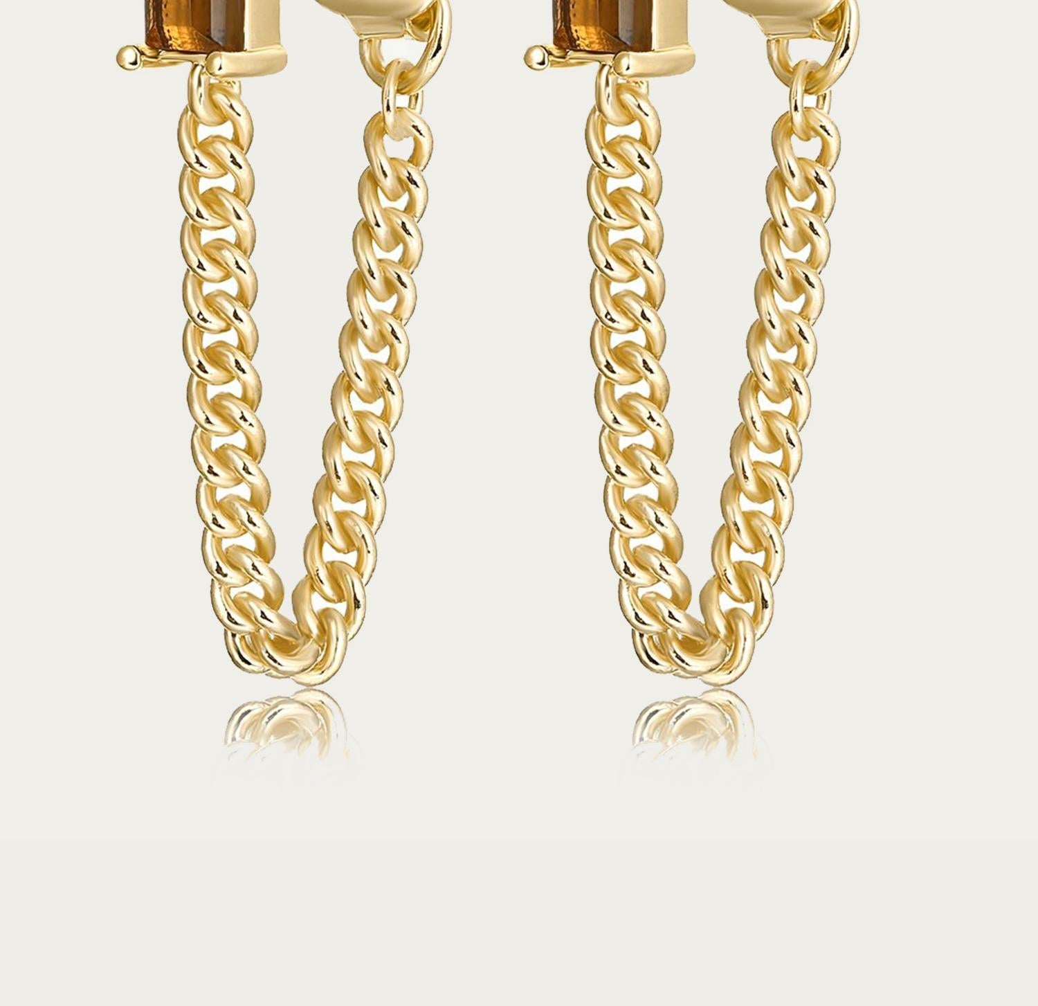 Classic earrings that will take you from season to season.Feature square-cut gemstones set above cuban chain drops that wrap around the earlobe. Wear yours with casual looks or to accessorize after-dark styles. Dimensions: 1" (25mm) total drop, .24" (6mm) gemstone Details: 18K gold plating with natural smoky quartz gemstone, nickel-free