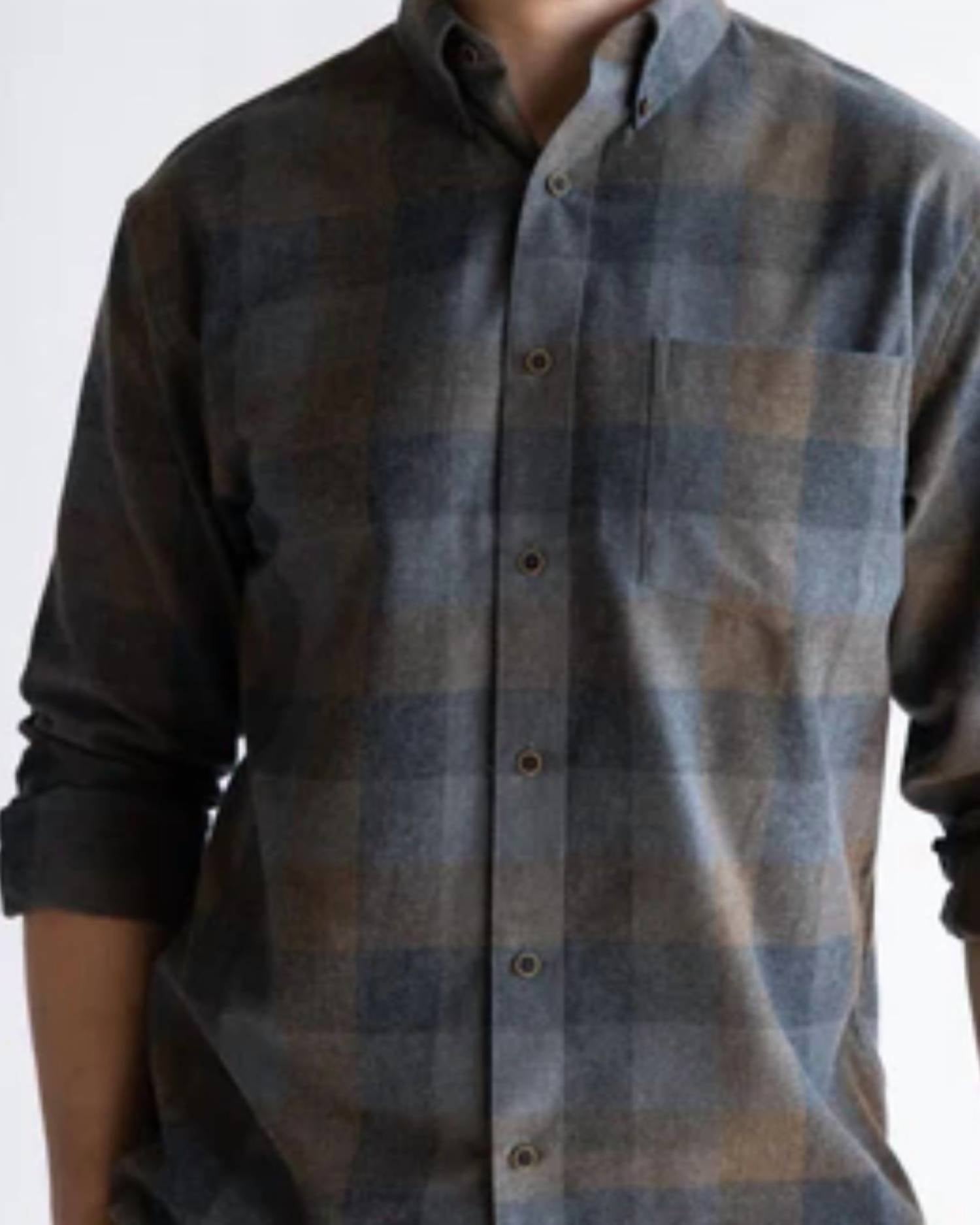 F/X Fusion presents the Long Sleeve Large Checked Polo, a stylish choice in grey and brown plaid for your fall wardrobe. Crafted from a cotton blend of 60% cotton and 40% polyester, it offers comfort with every wear. Featuring a button-down collar and single chest pocket, this polo is a perfect match for vacation outings and Thanksgiving gatherings. Closure: Button closure. Easy to care for with machine wash and tumble dry instructions.