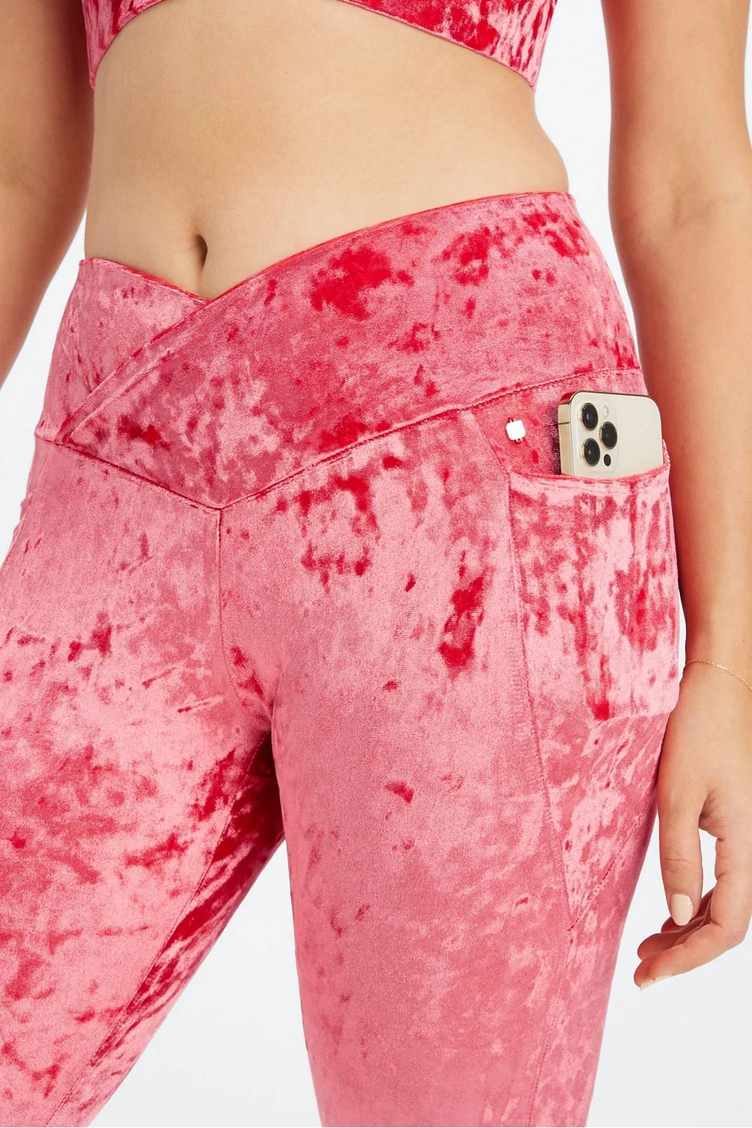 The legging you didn't know you needed and you won't want to take off. Elevate your yoga wardrobe with the Crushed Velour Crossover Legging by Fabletics, featuring a plush velvet material in striking Strawberry Red. These high-rise leggings boast a crossover style and skinny leg design, complete with convenient pockets. Crafted from 92% Polyester and 8% Elastane, they offer both comfort and a flattering silhouette. Closure: Pull-on. Ideal for activewear enthusiasts looking to blend style with practicality.