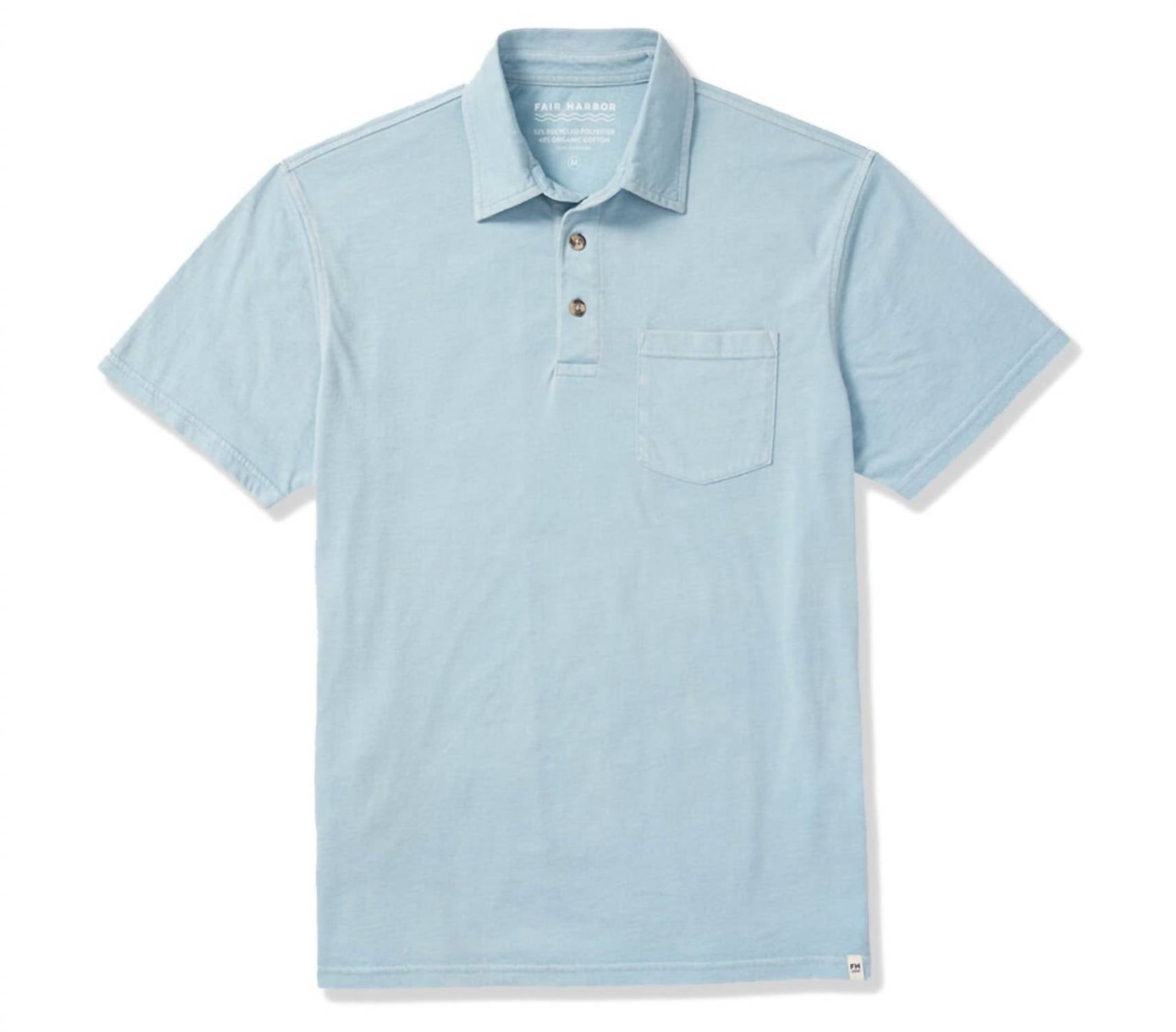 Introducing the Kismet Short Sleeve Polo by FAIR HARBOR, a timeless piece in light blue designed for both style and comfort. This polo shirt is crafted from a blend of 52% organic cotton and 48% recycled polyester, offering a lightweight and breathable fabric. The sun-drenched look and modern trim cut make it ideal for various occasions, from a casual day at the beach to a night out. With its pull-on closure and easy-care instructions of machine wash and line dry, this polo is perfect for summer travel or a 4th of July celebration.