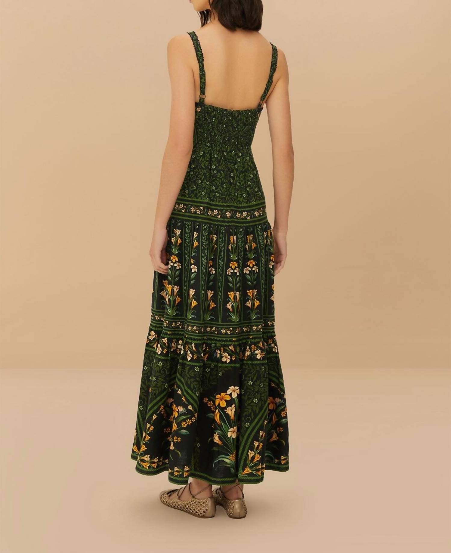 Introducing the Flowers Arch Sleeveless Maxi Dress by Farm Rio, a statement piece in chic black with a vibrant floral pattern. This elegant dress features a square neckline and an A-line silhouette, designed to flatter effortlessly. Made from a responsible linen blend, it combines 55% linen with 45% viscose for a lightweight feel. Closure is via a back zip, and for easy care, it's machine washable. Ideal for spring dinner parties and special occasions.
