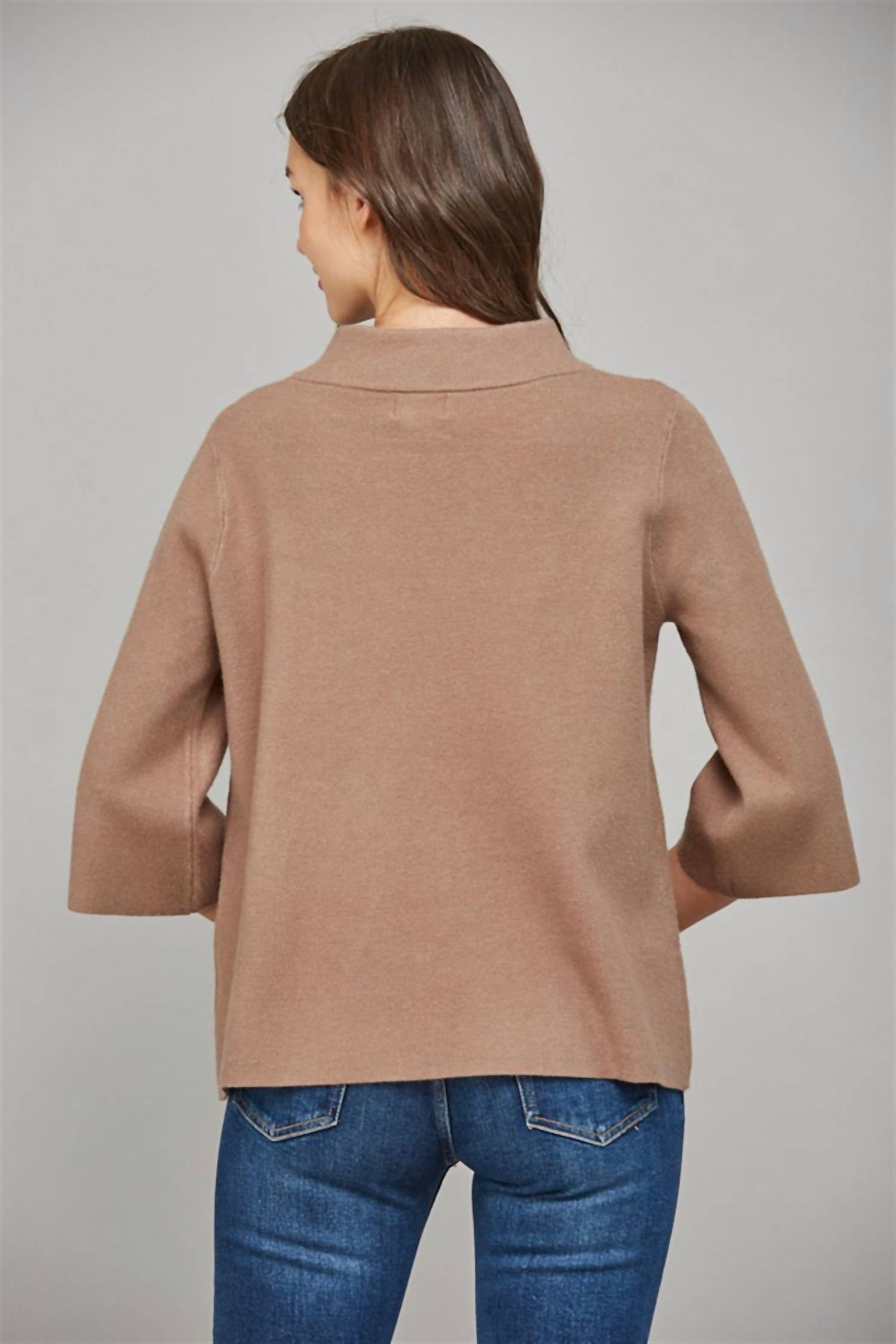 Layer under your favorite sweater or wear tucked into jeans for a perfectly polished winter look. Introducing the Pepper Mock Neck Sweater by Fate, perfect for adding a pop of color to your winter wardrobe. This sweater features a mock neck design with three-quarter bell sleeves, offering both style and comfort. Crafted from a blend of 55% Viscose and 45% Nylon, this sweater comes in a versatile length of 23.5 inches, ideal for layering. Easy to wear with its pull-on closure, it should be hand washed to maintain its quality. Available in sizes with bust measurements: Small 40", Medium 42", Large 44".