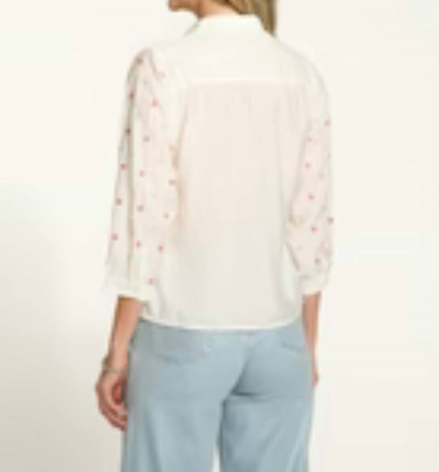 A timeless blouse that will never go out of style. Elevate your basics with this classic white shirt, featuring beautifully embellished sleeves for a chic twist.