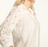 Elevate your basics with this classic white shirt, featuring beautifully embellished sleeves for a chic twist.