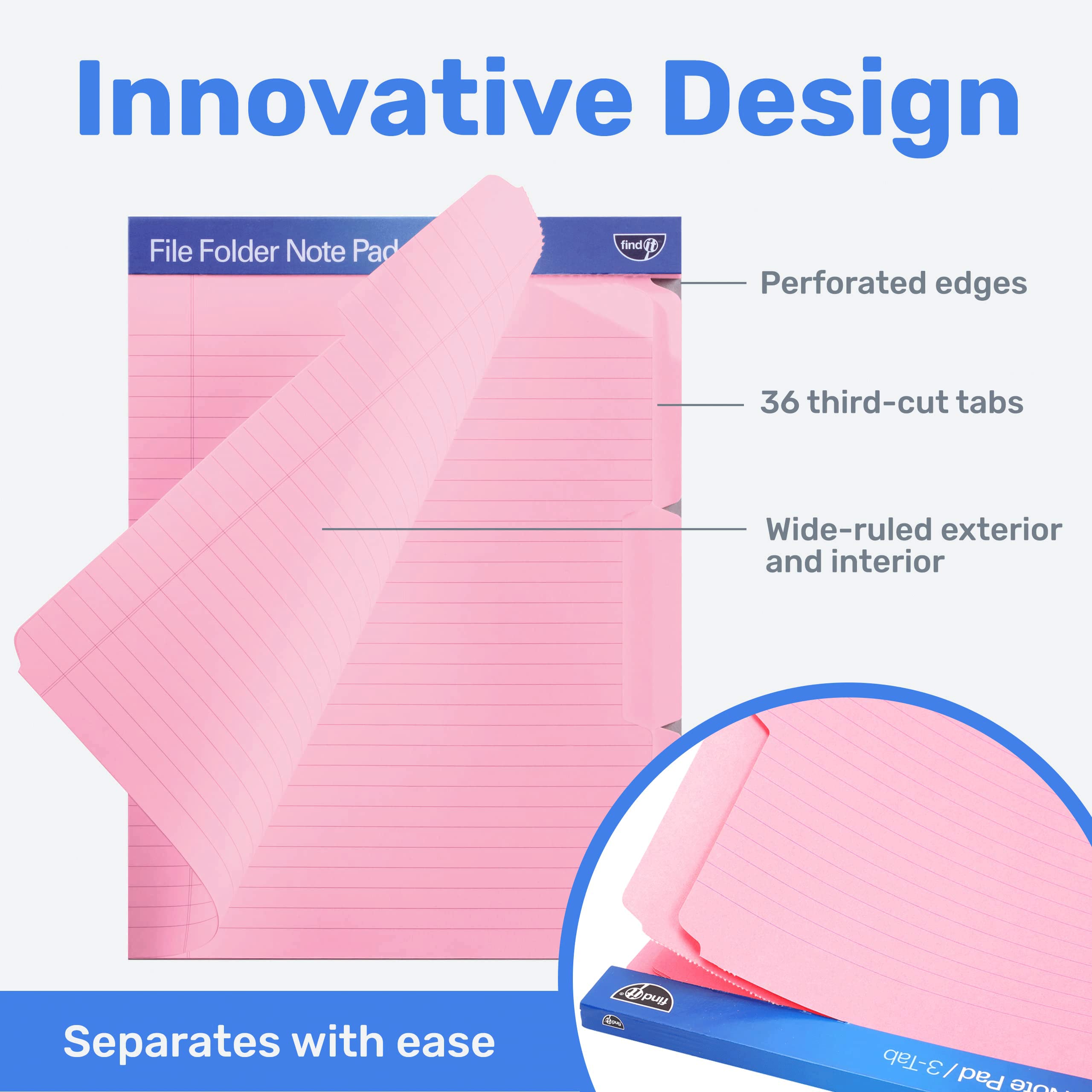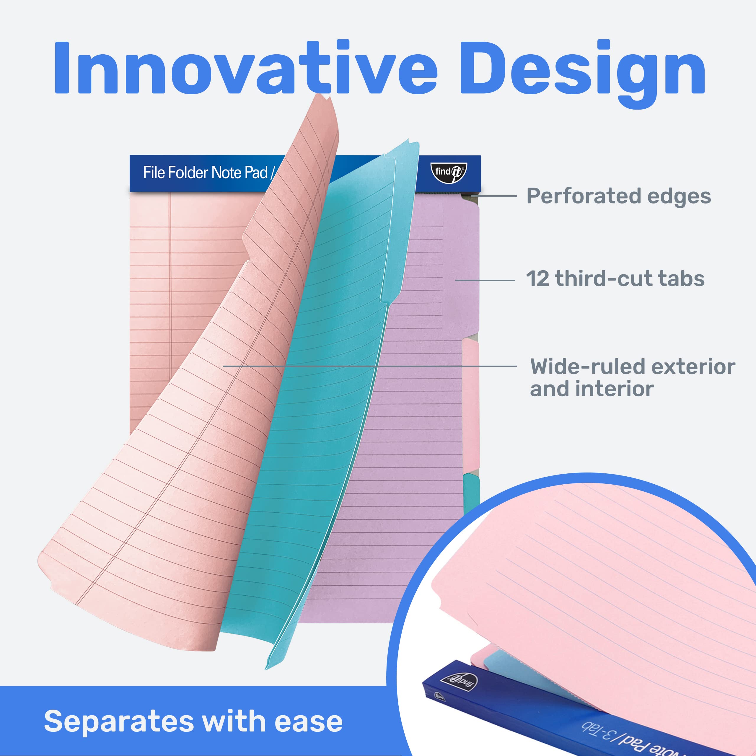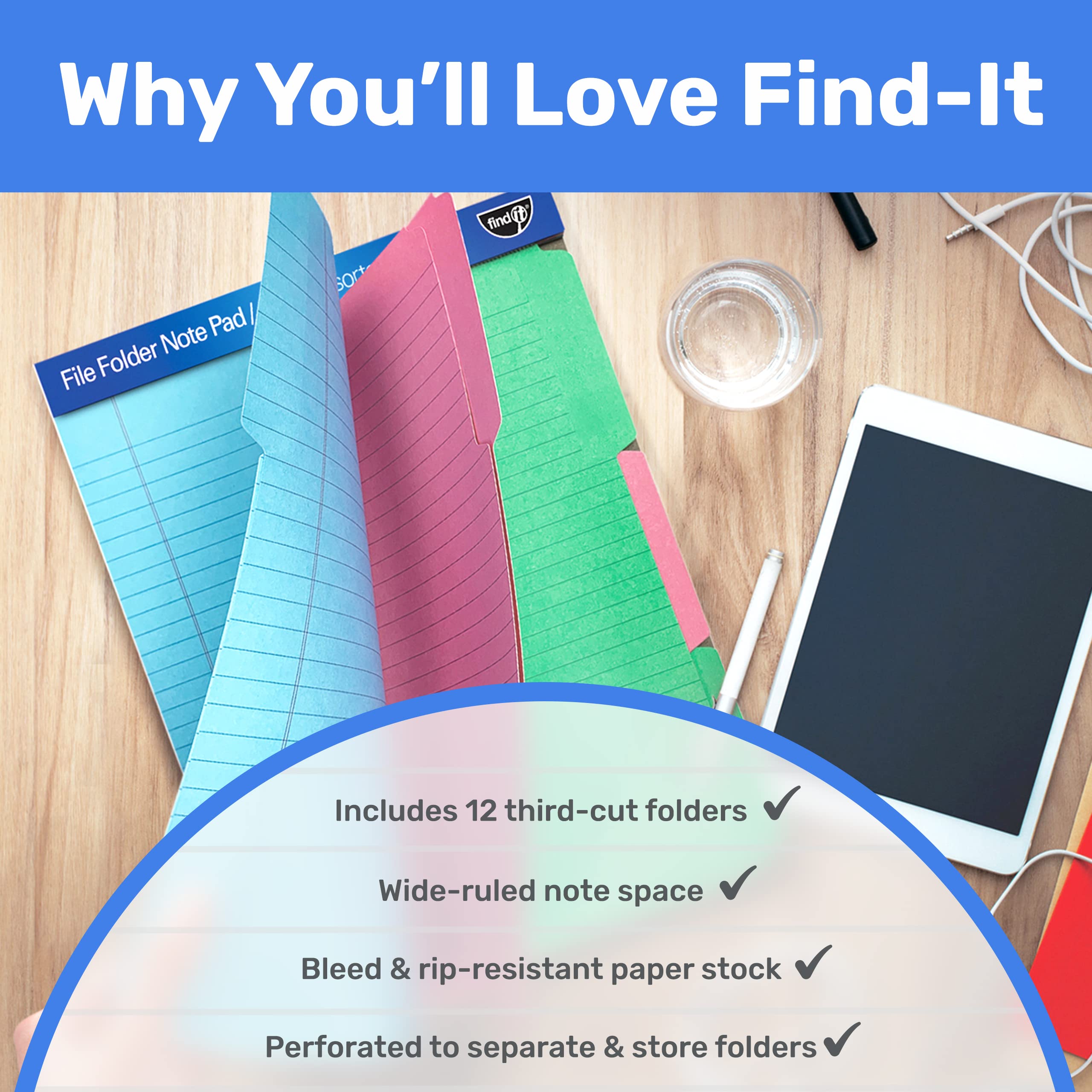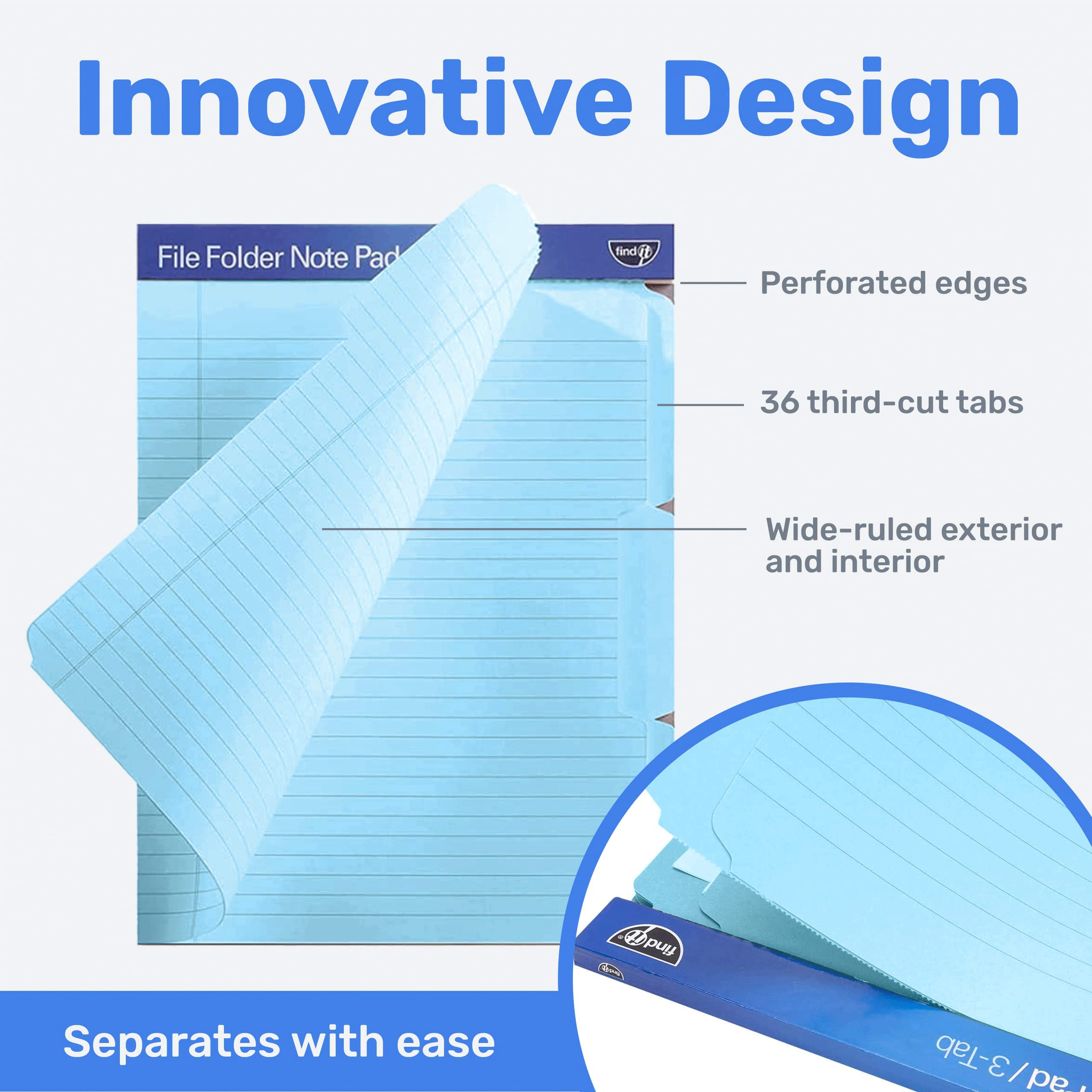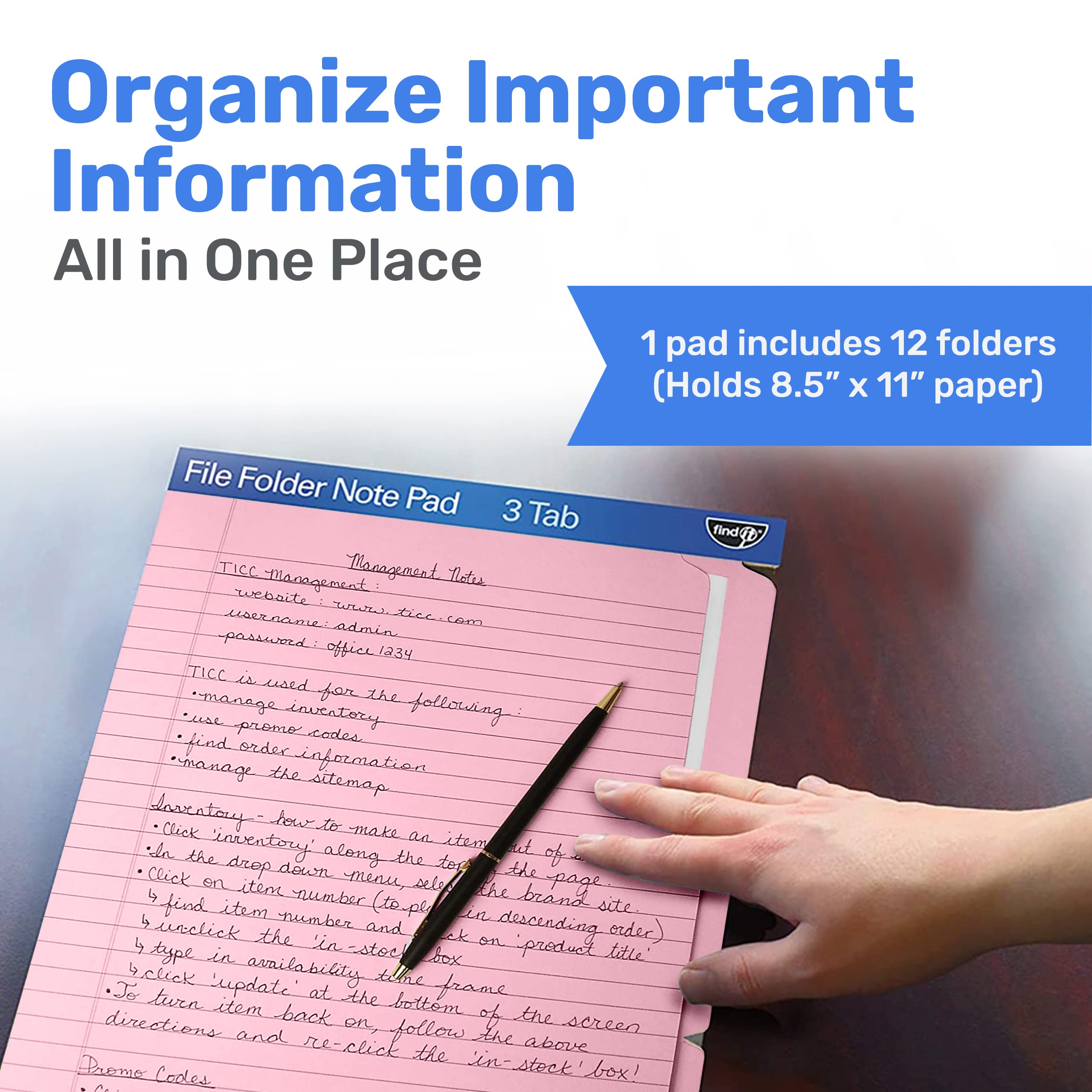 - 12 FOLDERS - Enjoy 12 assorted third-cut file cabinet folders in each pad. The perforated top allows you to simply tear and file your notes easily and efficiently.