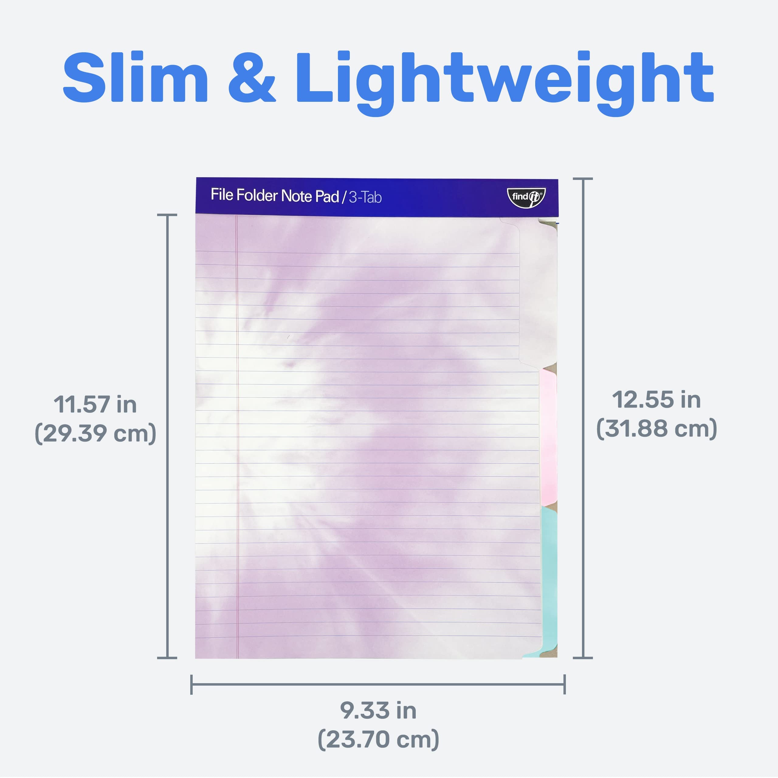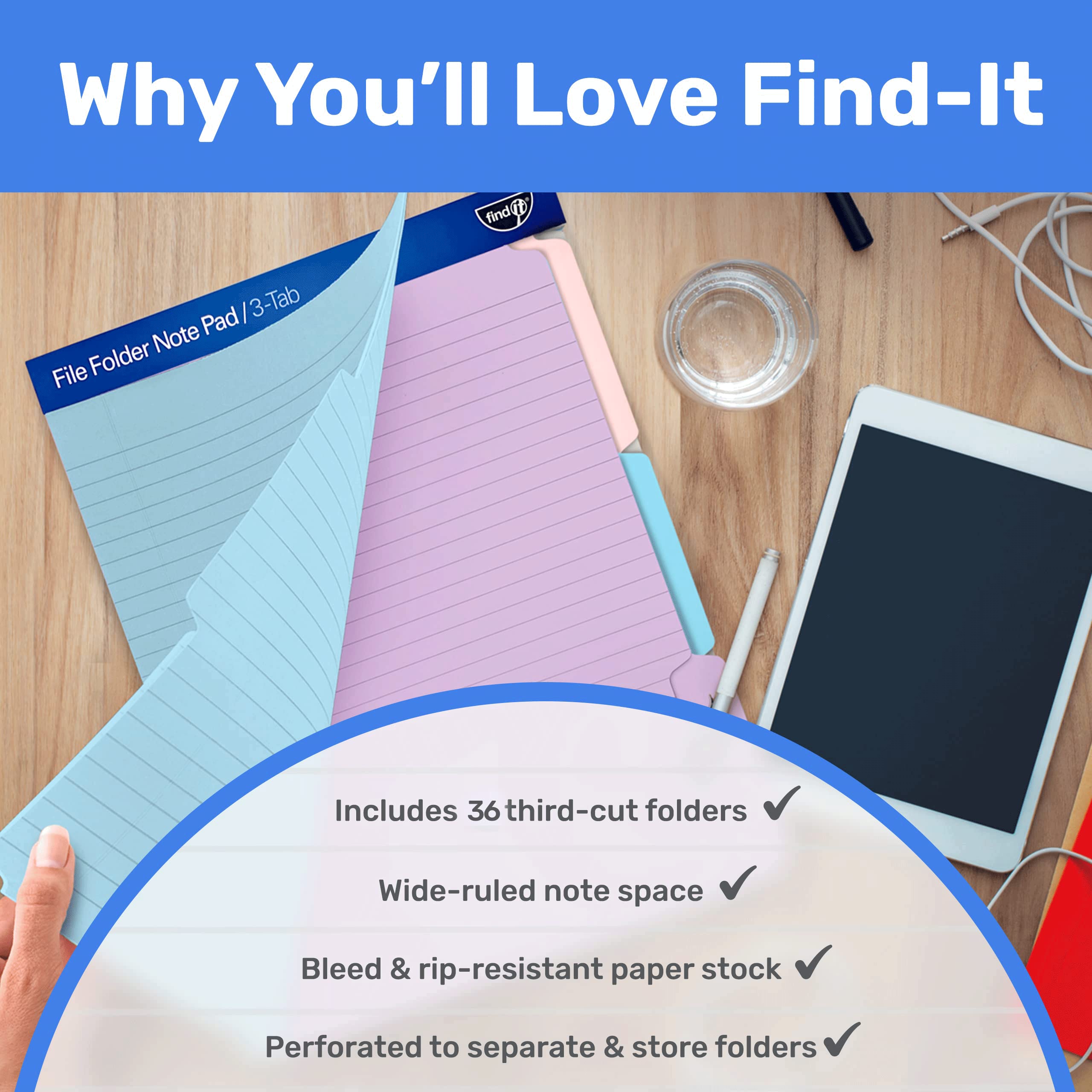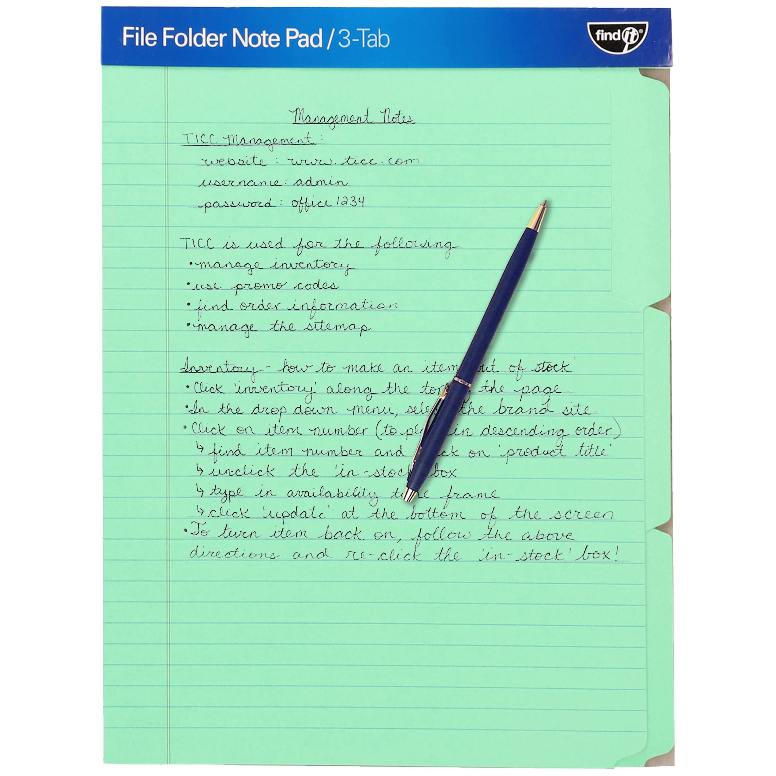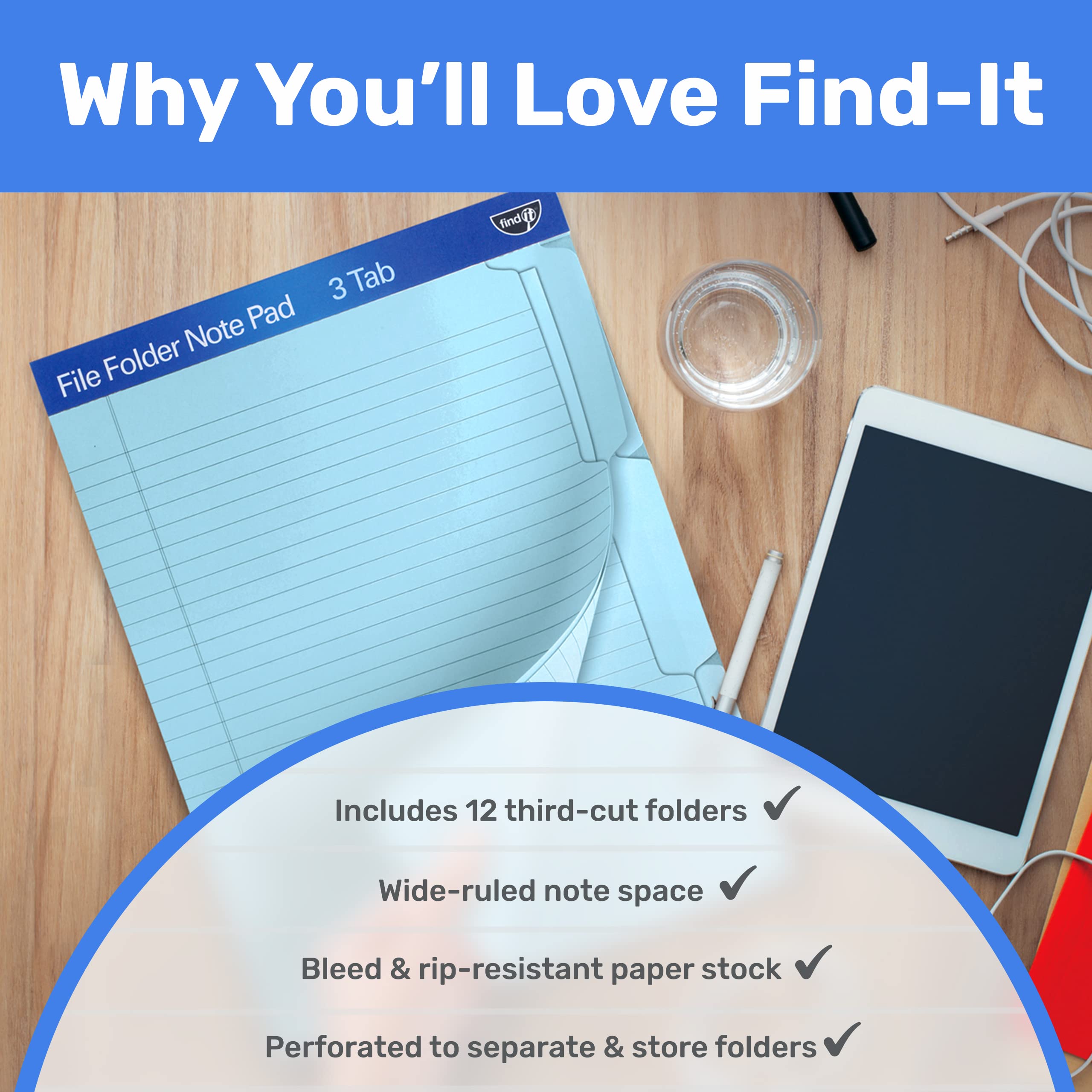 - 12 FOLDERS - Enjoy 12 assorted third-cut file cabinet folders in each pad. The perforated top allows you to simply tear and file your notes easily and efficiently.