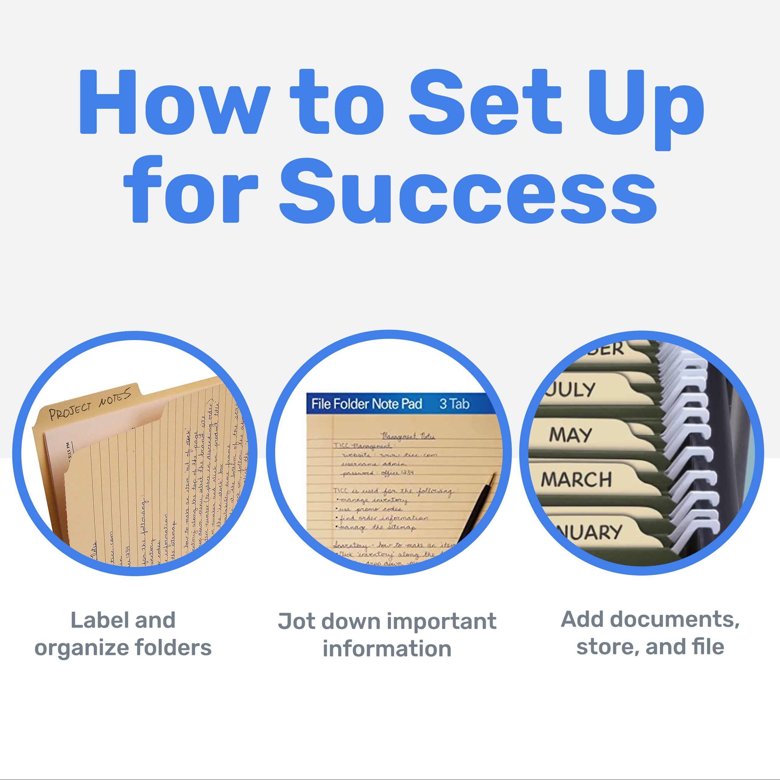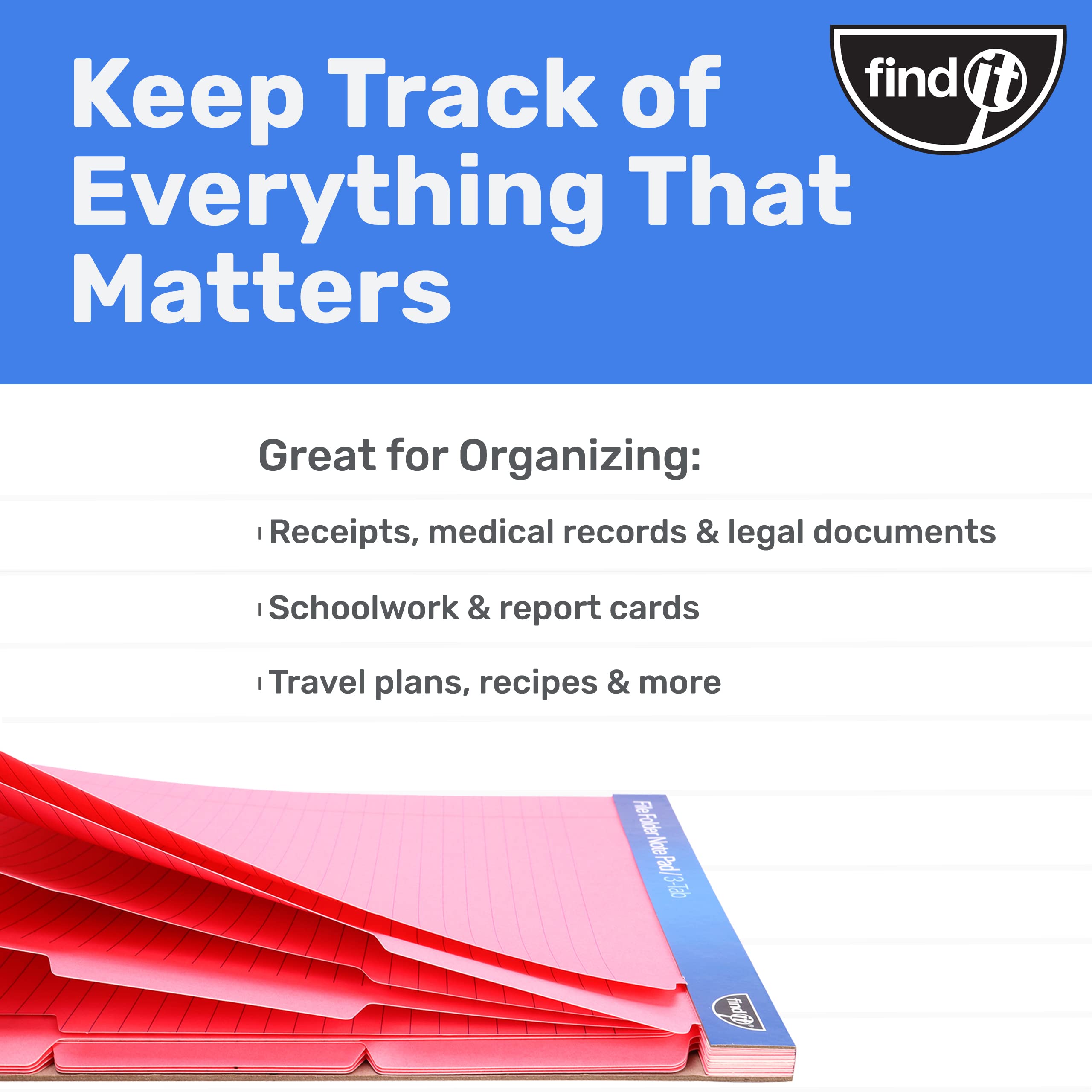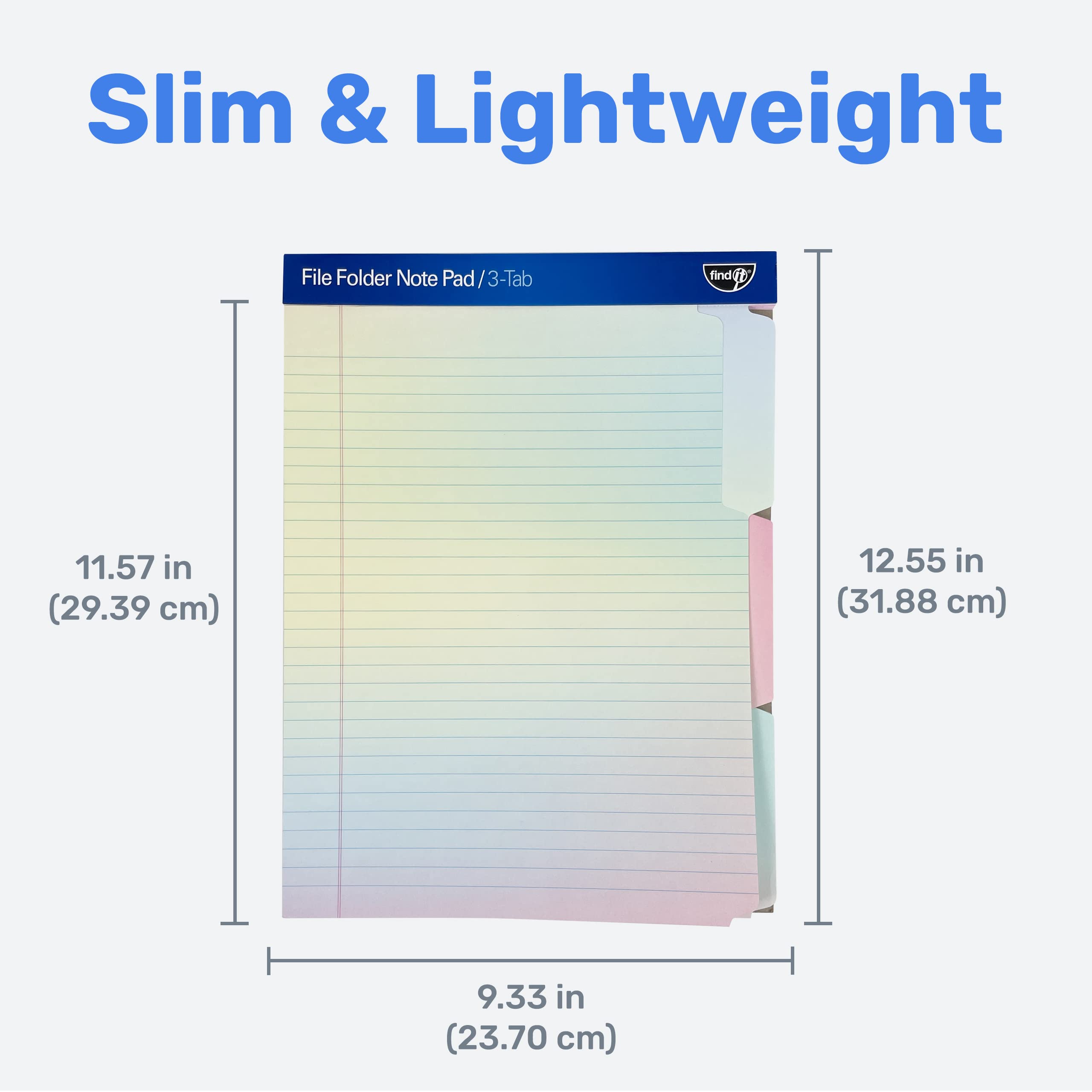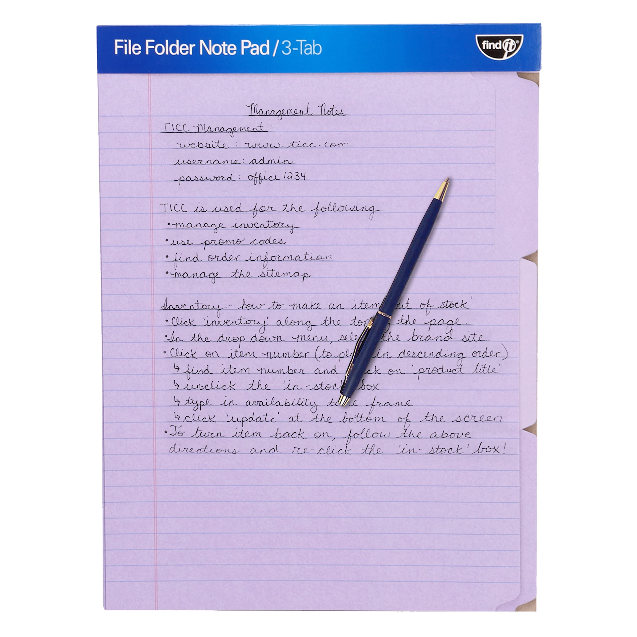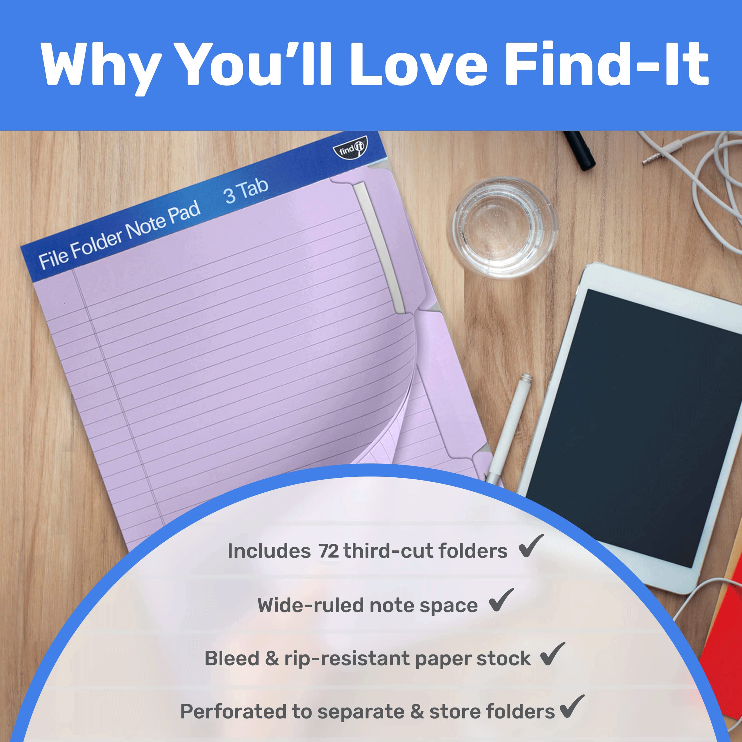 - 12 FOLDERS - Enjoy 12 assorted third-cut file cabinet folders in each pad. The perforated top allows you to simply tear and file your notes easily and efficiently.