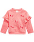 Crewneck|Bow appliqués at body; ruffled trim at sleeves; textured-knit styling|Shell: polyester/cotton/spandex; bows: polyester|Machine washable|Imported
