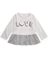 Round neckline|'LOVE' graphic print at front; gingham print peplum hem|Cotton/polyester|Machine washable|Imported