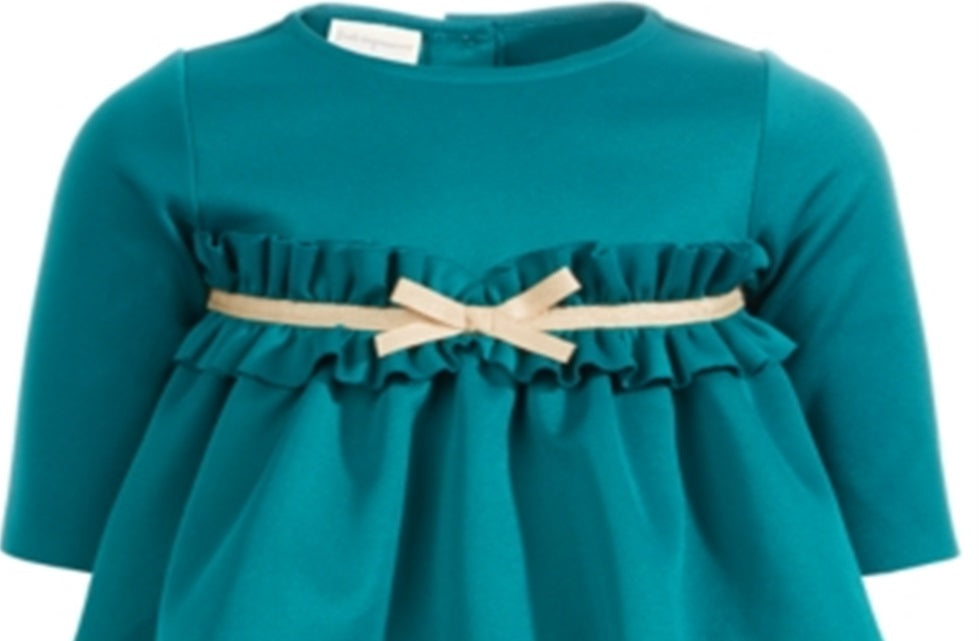 First Impressions Baby Girl's Scuba Ruffled Bow Dress Green Size 12MOS