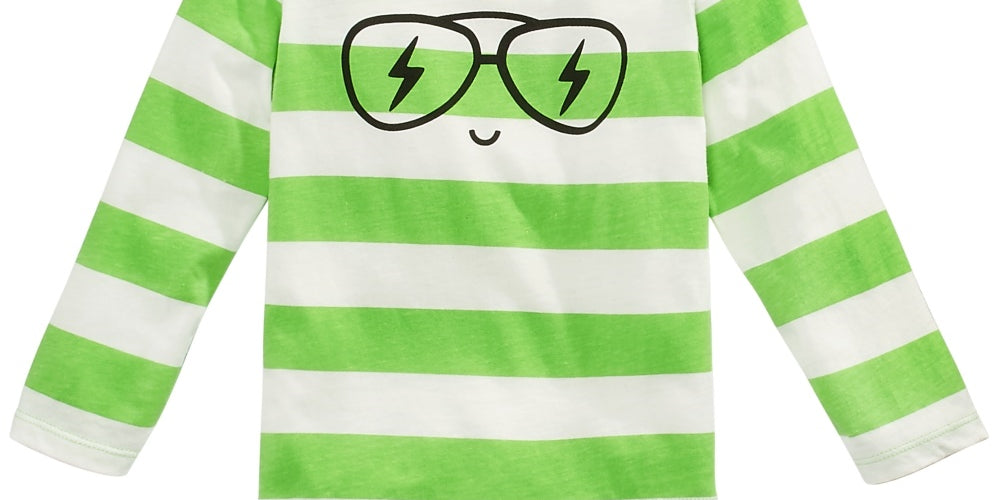 First Impressions Boy's Striped Face Print Cotton T Shirt Green Size 2T REG