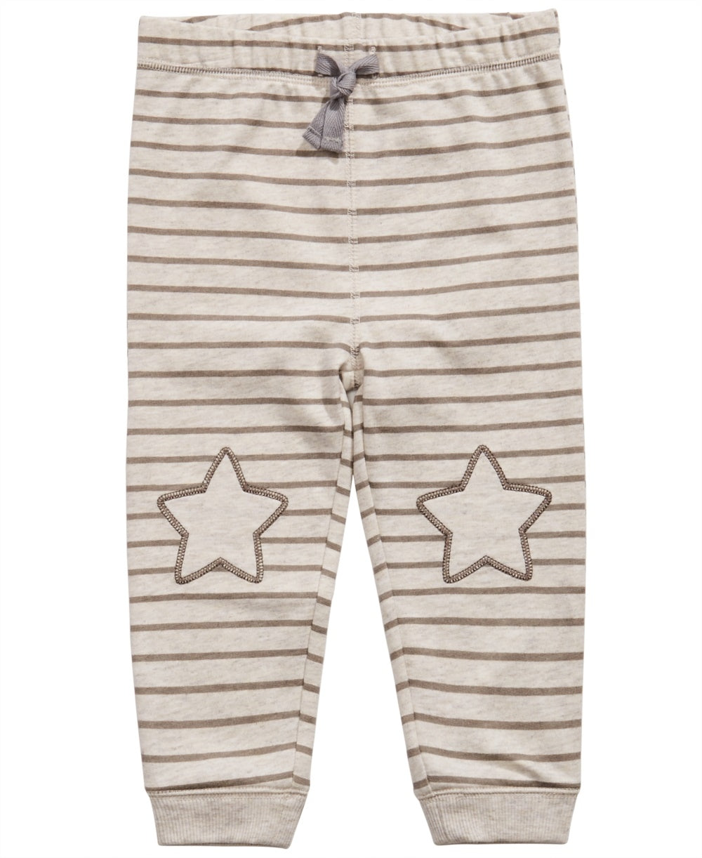 First Impressions Toddler Boy's Striped Star-Patch Jogger Pants Beige Size 4T