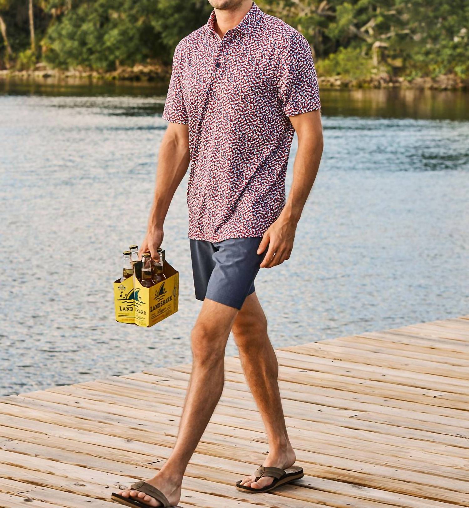 The Winfield Multi Star Performance Polo by Flags & Anthem is a summer essential for the preppy man, perfect for both travel and celebrating Father's Day. With short sleeves and a stylish red, white, and blue pattern, this piece offers a tailored athletic fit. Made from 89% Polyester and 11% Spandex, it boasts MadeFlex Performance Technologies including built-in stretch, moisture-wicking, and UPF sun protection for all-day comfort. Closure: Traditional three-button front placket. Garment Length: 29.25 inches from the highest shoulder point. Care: Machine wash. Imported.