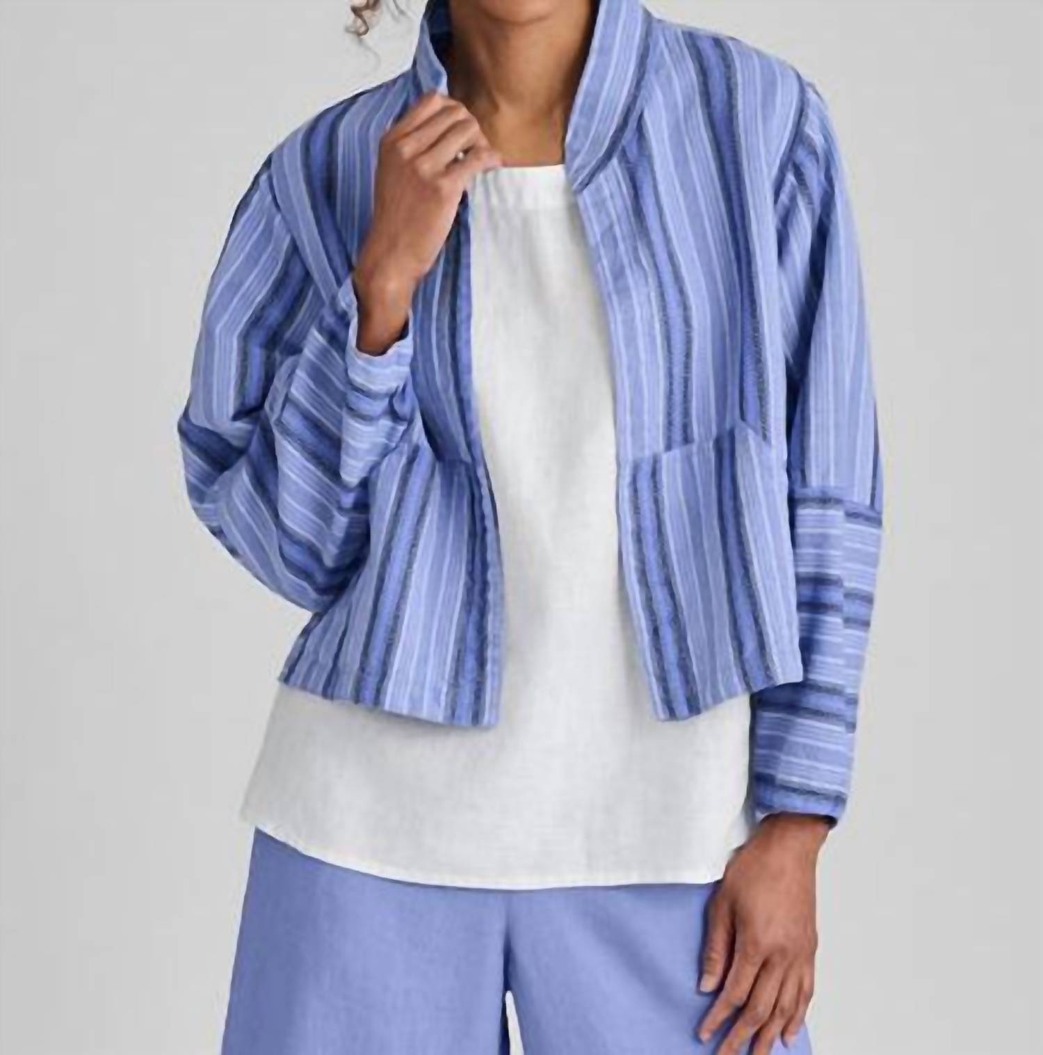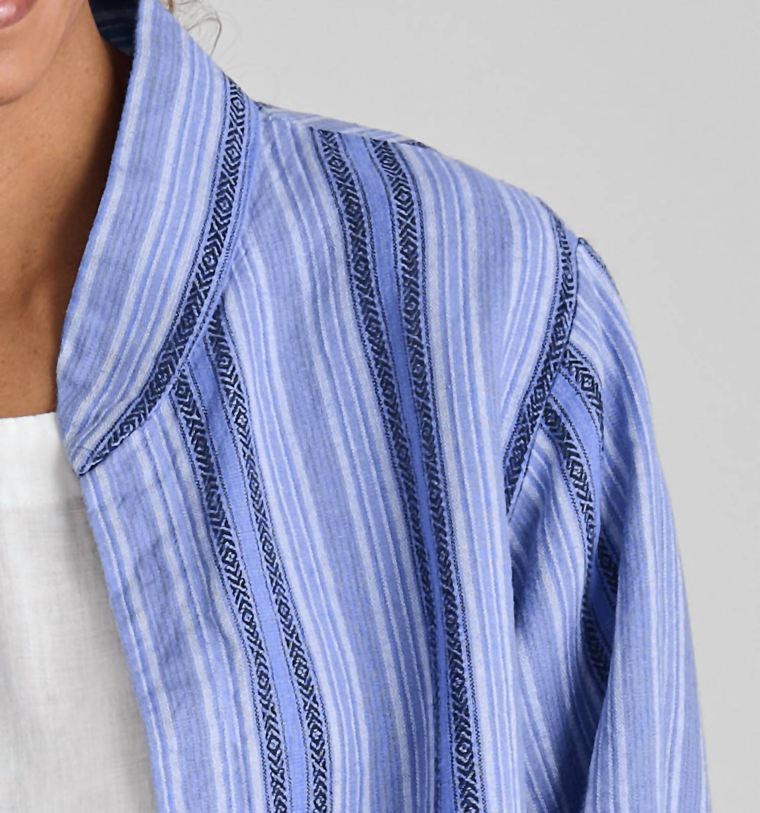 Cute, casual, and comfortable. This jacket is a must have. This boxy open-front jacket is defined by a crisp stand-up collar and softly voluminous sleeves, creating a refined silhouette. Crafted from a medium-weight linen-cotton blend with a subtle textured finish, it’s a versatile layer that complements both casual and elevated looks. Made of 58% linen and 42% cotton.