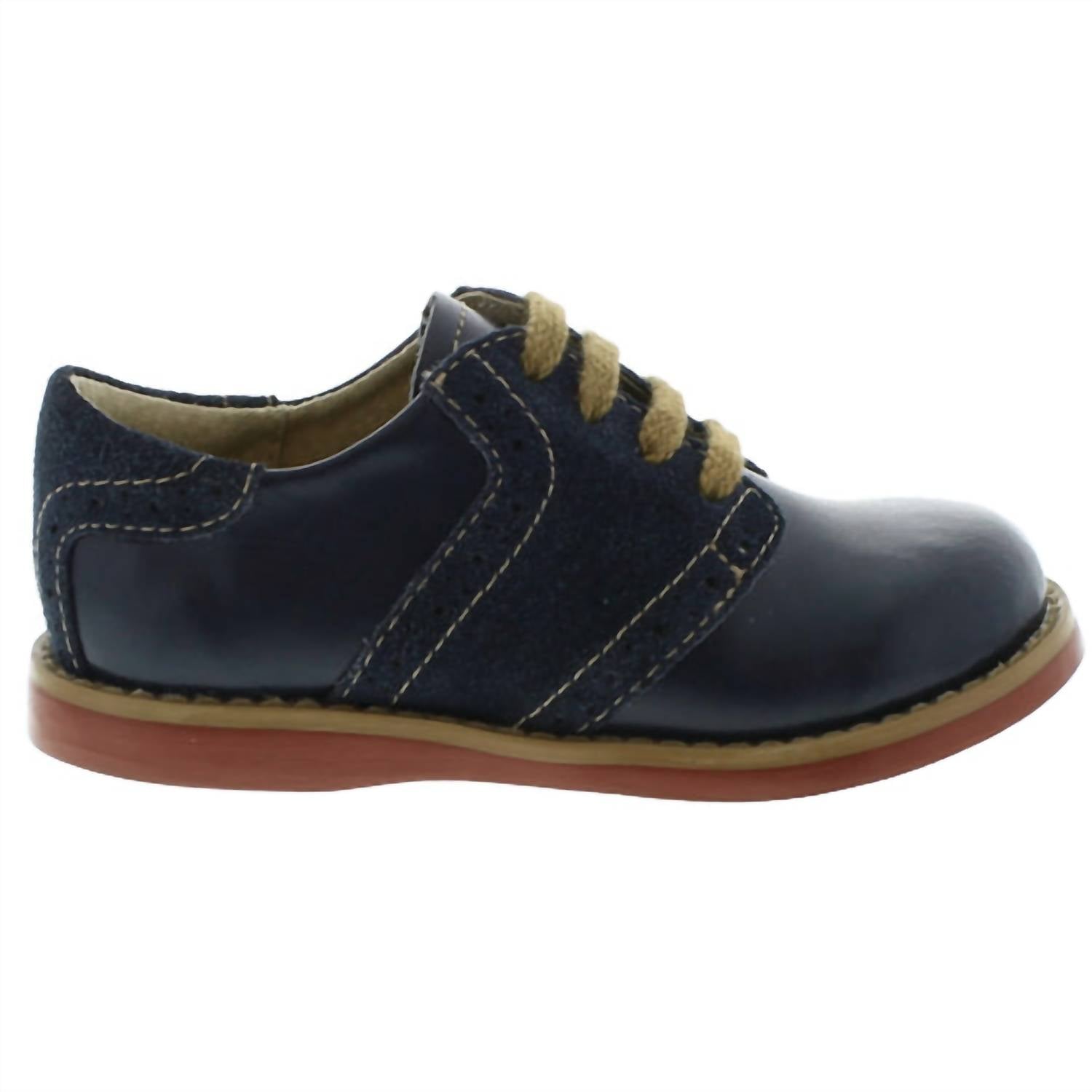 Introducing the Boy's Two Tone Oxford Shoes by FootmateS, crafted to perfection in a stylish navy suede for a sophisticated touch. These classic lace-up dress shoes feature a 100% leather composition with a removable medium and wide insole, making them a versatile choice. Designed with a round toe and flat heel, they are ideal for dinner parties and spring streetwear trends. Please note they run small, ensuring a perfect fit upon consideration.