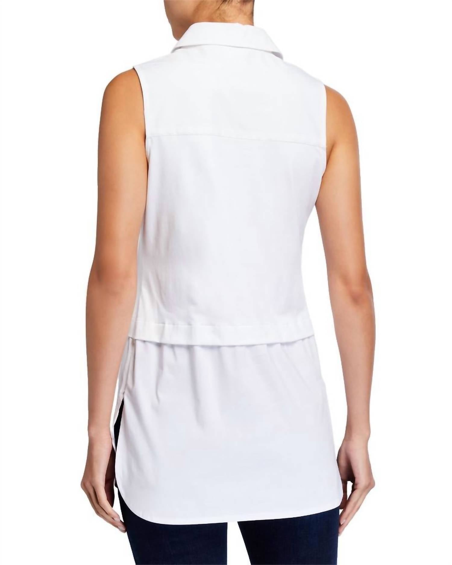 The Foxcroft Long Layering Tank Top is a must-have for minimalist spring style, perfect for Easter or vacations. This women's sleeveless tank is crafted from 60% Cotton, 35% Polyester, 5% Spandex in a classic white solid pattern. Designed with a collar neckline, it offers a chic yet simple appeal. Closure: Pull on. Care: Machine wash.