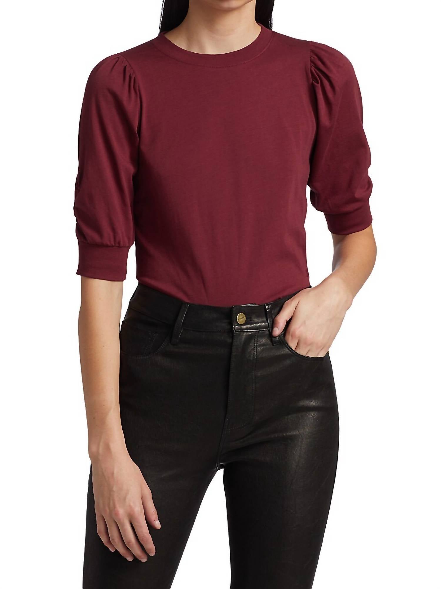 The short sleeve tee you'll want in every color.SHORT PUFF SLEEVES UPDATE A TIMELESS CREWNECK SHIRT CUT FROM PURE COTTON FOR COMFORT AND STYLE.