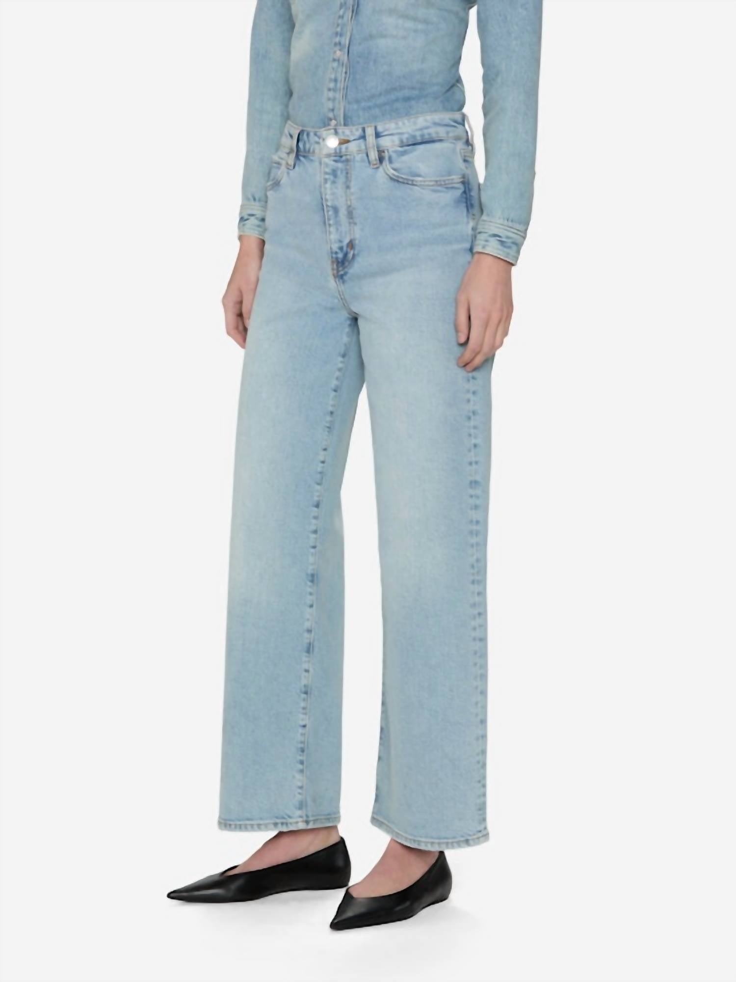 Tuck your favorite tee into these high-waist jeans for a more casual-cool feel. Elevate your style with the High Rise Wide Leg Jean by FRAME, a perfect addition for your spring wardrobe. These jeans, in a solid Dolly wash, are crafted from a comfortable cotton blend composed of 99% Cotton and 1% Elastane. With a relaxed fit and an 11.9" high rise, they offer a flattering wide-leg silhouette. Closure: Button closure. Care: Machine wash, tumble dry. Inseam: 27.5".