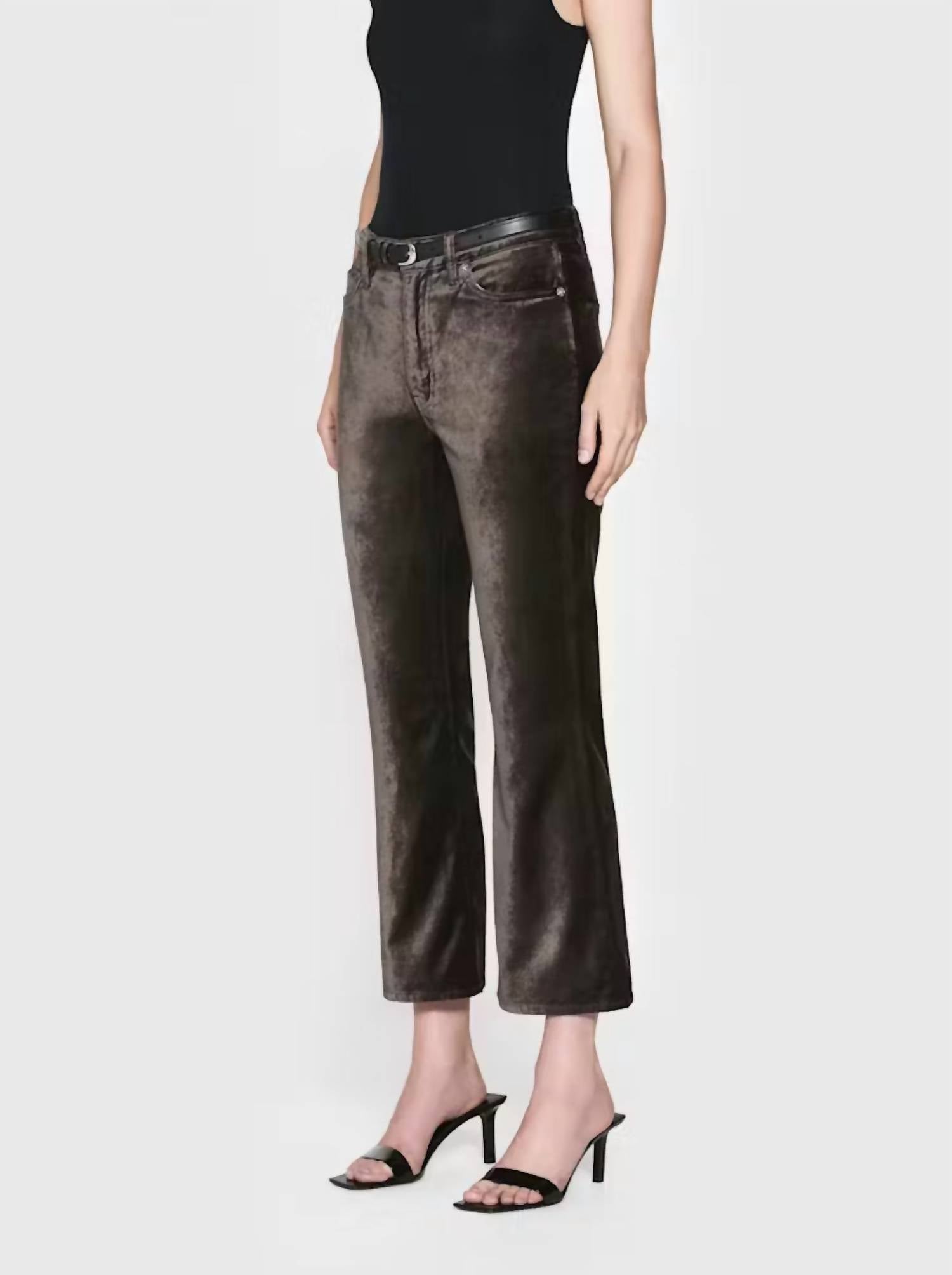 Comfortable and stylish, we love this cropped jean for all of the obvious reasons. Unveil effortless sophistication with the Le Crop Mini Boot Velvet High Rise Jeans by FRAME. These ankle & cropped jeans in stunning Comet offer a bootcut leg style, featuring a flattering high rise of 10.5 inches and a cropped 26.5-inch inseam, making them perfect for any dinner party or New Year's Eve celebration. Expertly crafted from a luxurious blend of 54% cotton, 44% rayon, and 2% elastane, their soft stretch velveteen ensures all-day comfort and style. Care for these solid, dark wash jeans by dry cleaning, and embrace a timeless addition to your spring wardrobe. Imported for your delight, these jeans run true to size and promise to elevate any ensemble.