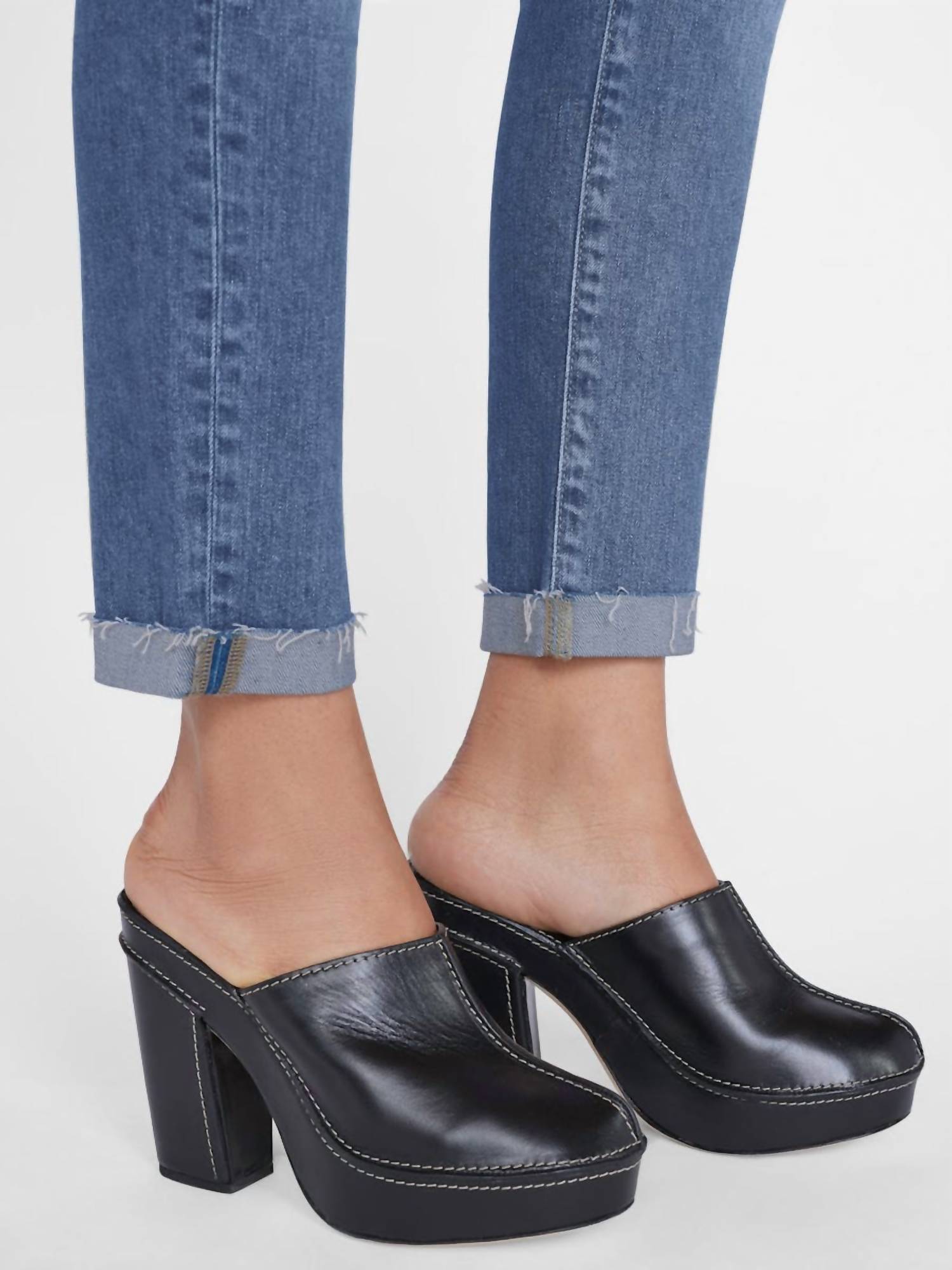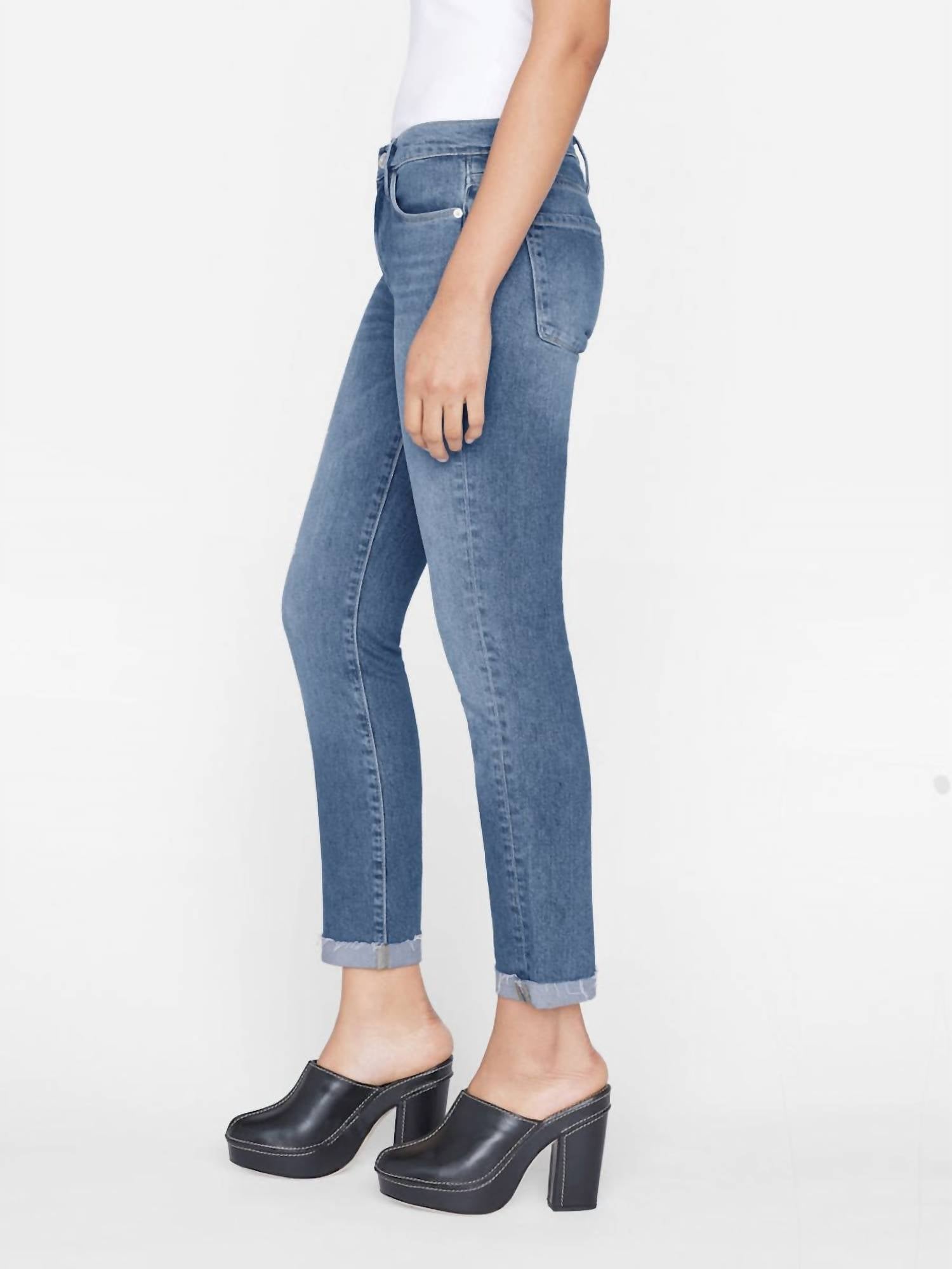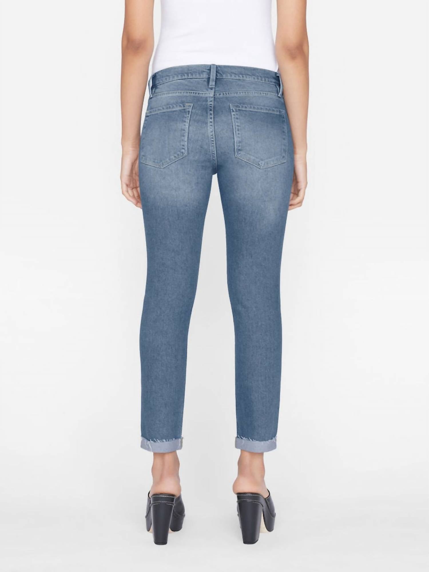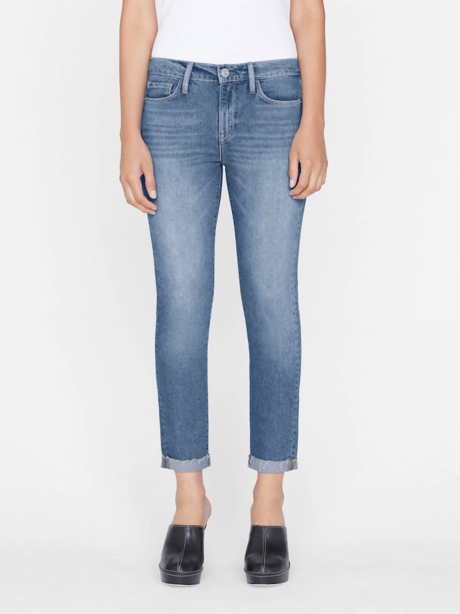 We especially love this cropped jean with a cute pair of slides or sandals.Signature jean with a comfortable mid-rise waist that hits higher in the back and a relaxed taper through the leg with a pre-cuffed raw edge hem. Fabric: 79% Cotton/20% Recycled Cotton/1% Elastane. Wash Inside Out. True to size. Model is 5'11" Tall/180cm is wearing a US Size 26. Measurements - 8.75" Front Rise/29" Inseam/12" Leg Opening.