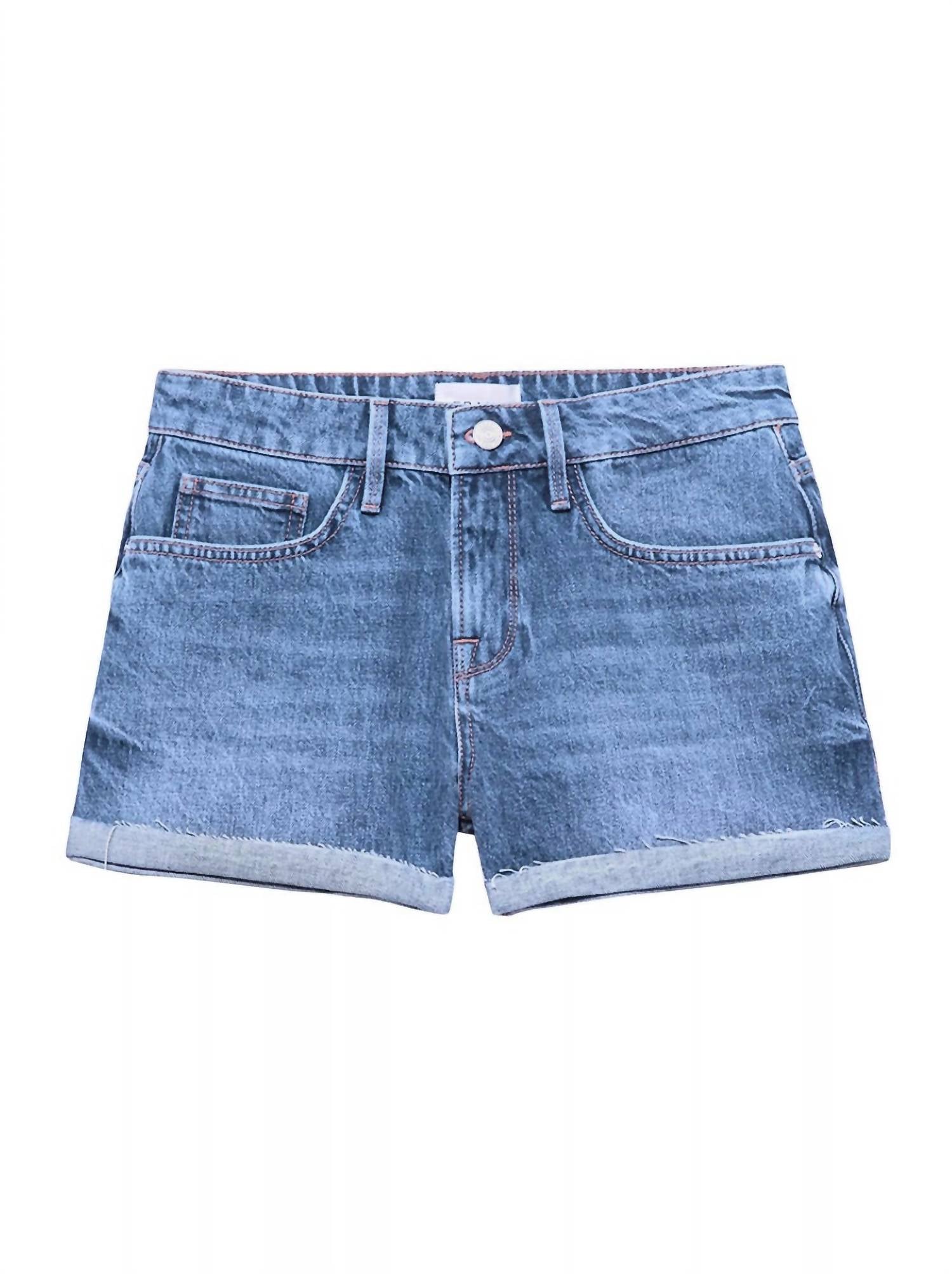 The cutest skort that combines style and functionality.Feature a mid-rise silhouette. Crafted of rigid denim. Rolled cuffs with raw edge hems complete the look. 9.75" rise.,3" inseam. 24" leg opening. Machine Wash Cold. 100% Cotton. Made in Turkey.