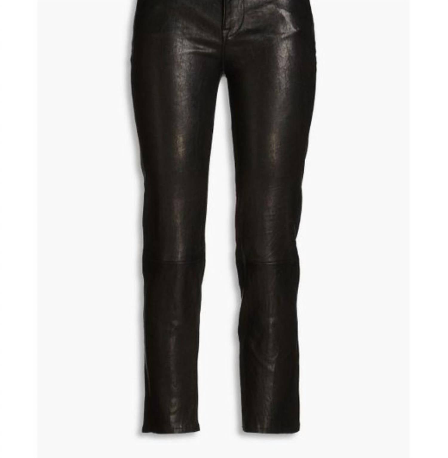 This straightleg pant is both stylish and comfortable. Did we mention the fit is perfection?Straight-leg pants. Leather. Crinkled. Multipockets. Belt loops. High-rise cut. Button and concealed zip fastening at front. Supple, stretchy leather mid-weight fabric. 100% Lambskin.