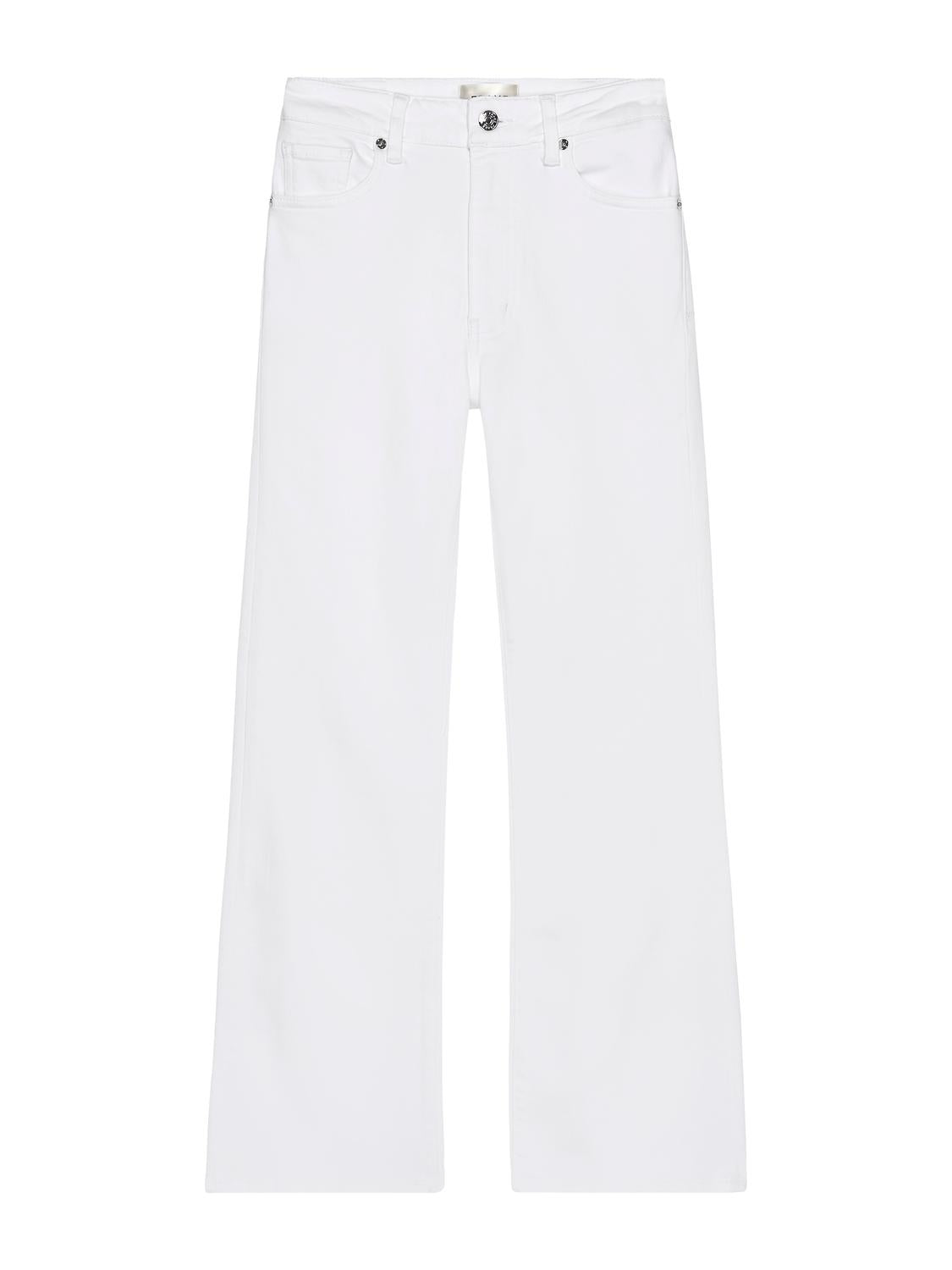 Elevate your denim collection with the Reboot Crop Jean by FRAME in a versatile white hue. This high-rise jean features a 27-inch cropped inseam and a comfortable bootcut leg, designed from an ultra-stretchy cotton blend for all-day ease. It boasts a zip fly with button closure and a five-pocket silhouette, complemented by stylish contrast stitching and silver-tone hardware. Care: Machine wash cold. Dimensions: 11" front rise, 27" inseam, 17" leg opening.