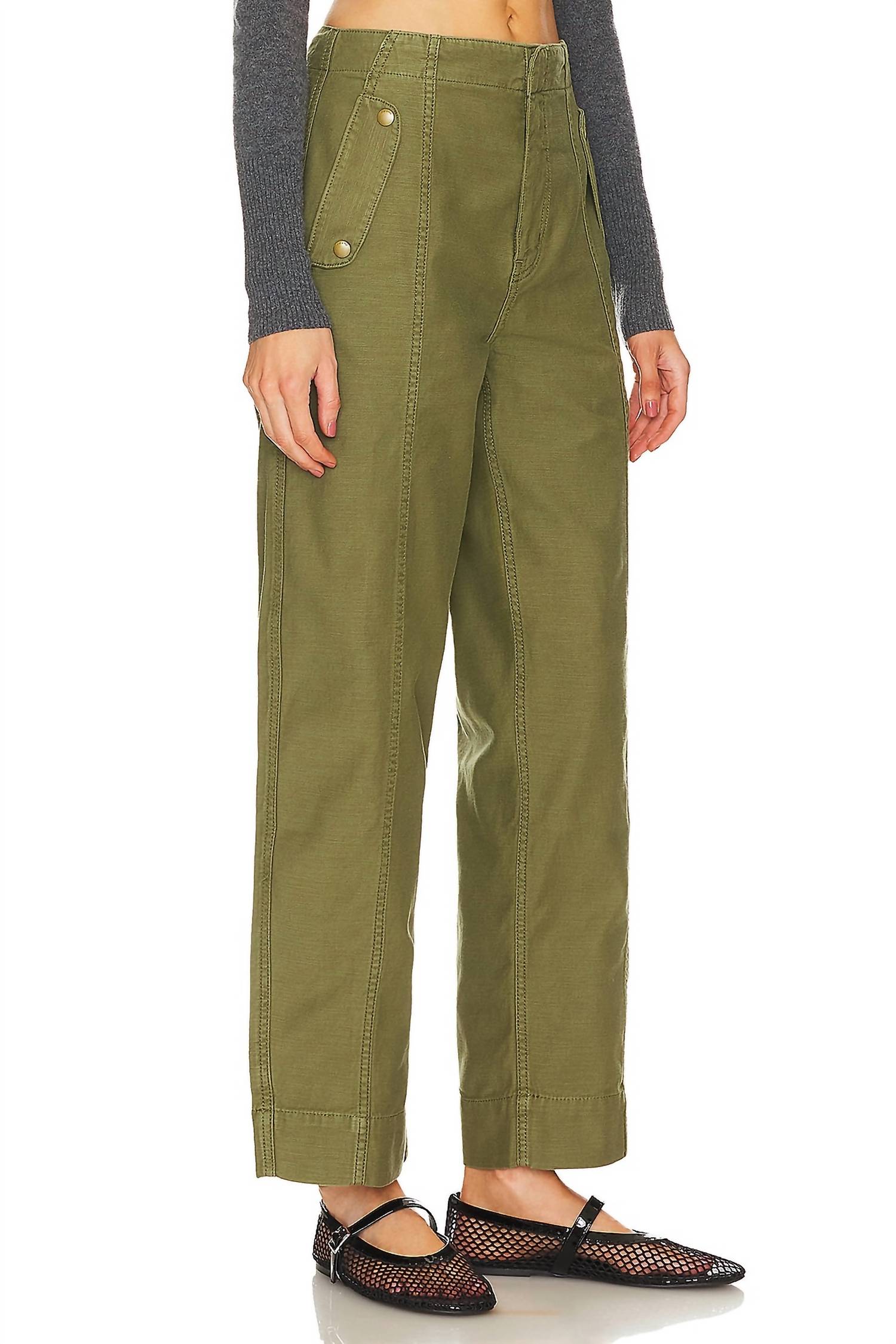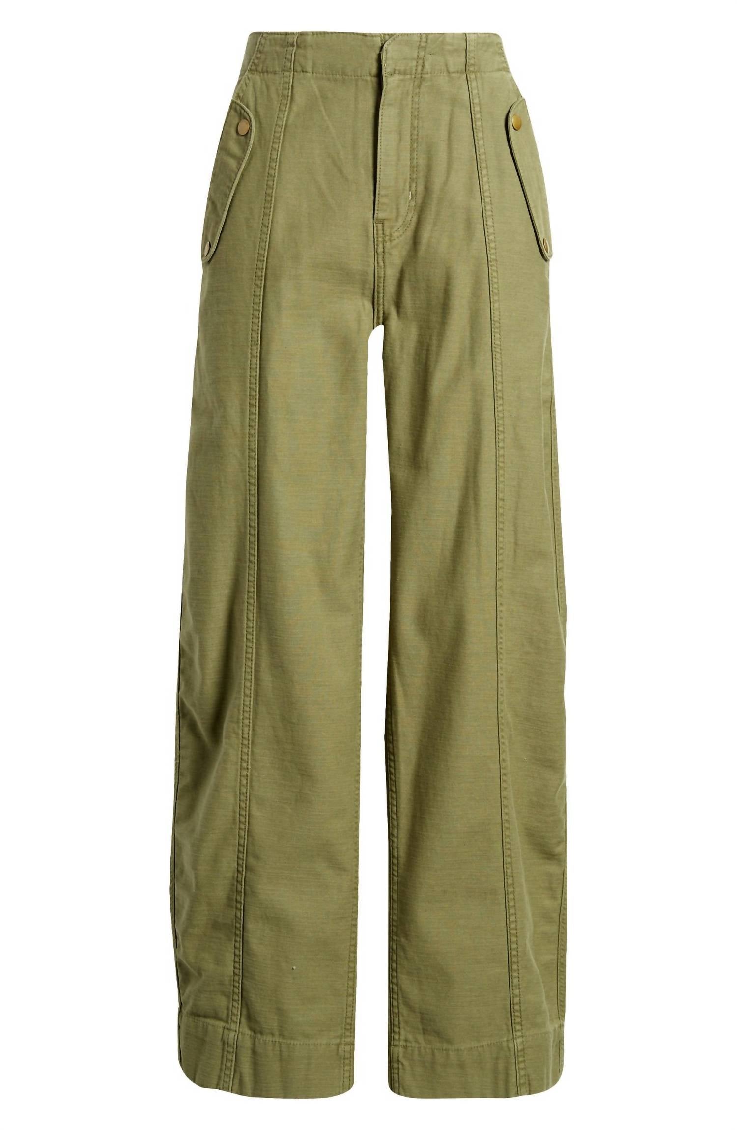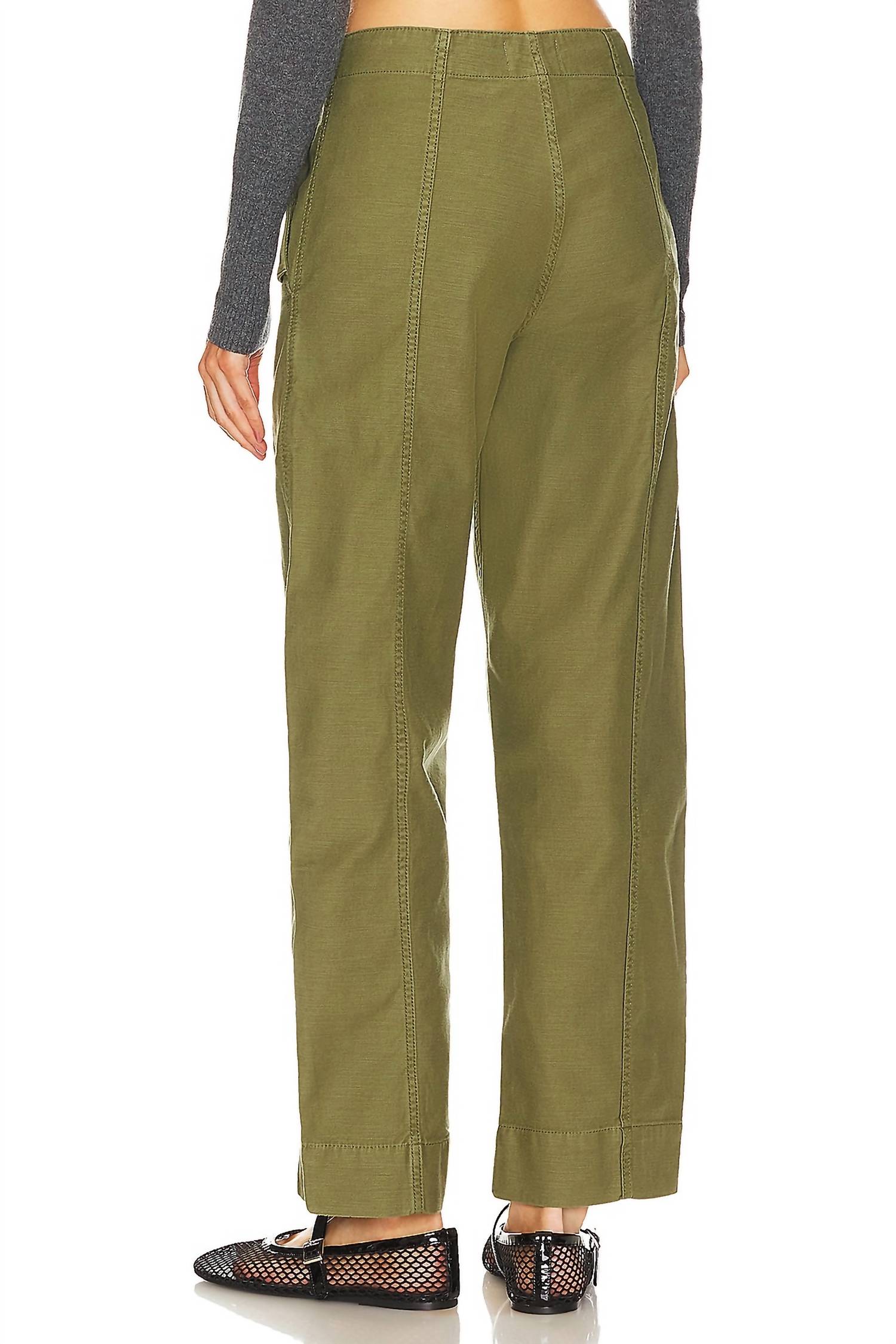 A perfectly tailored straight leg that you'll want in every color! Introducing the FRAME Utility Barrel Washed Pants in Winter Moss, expertly crafted for travel-ready style. These women's straight-leg pants boast an ultra-high rise and a slim fit, designed with a 29" inseam and an 11.75" rise for flattering comfort. Made from 100% cotton in Turkey, they feature sturdy zip and snap closures, side slant pockets with button flap detail, and are machine washable for easy care. Embrace the workwear trend with these versatile pants, perfect for any fall occasion.