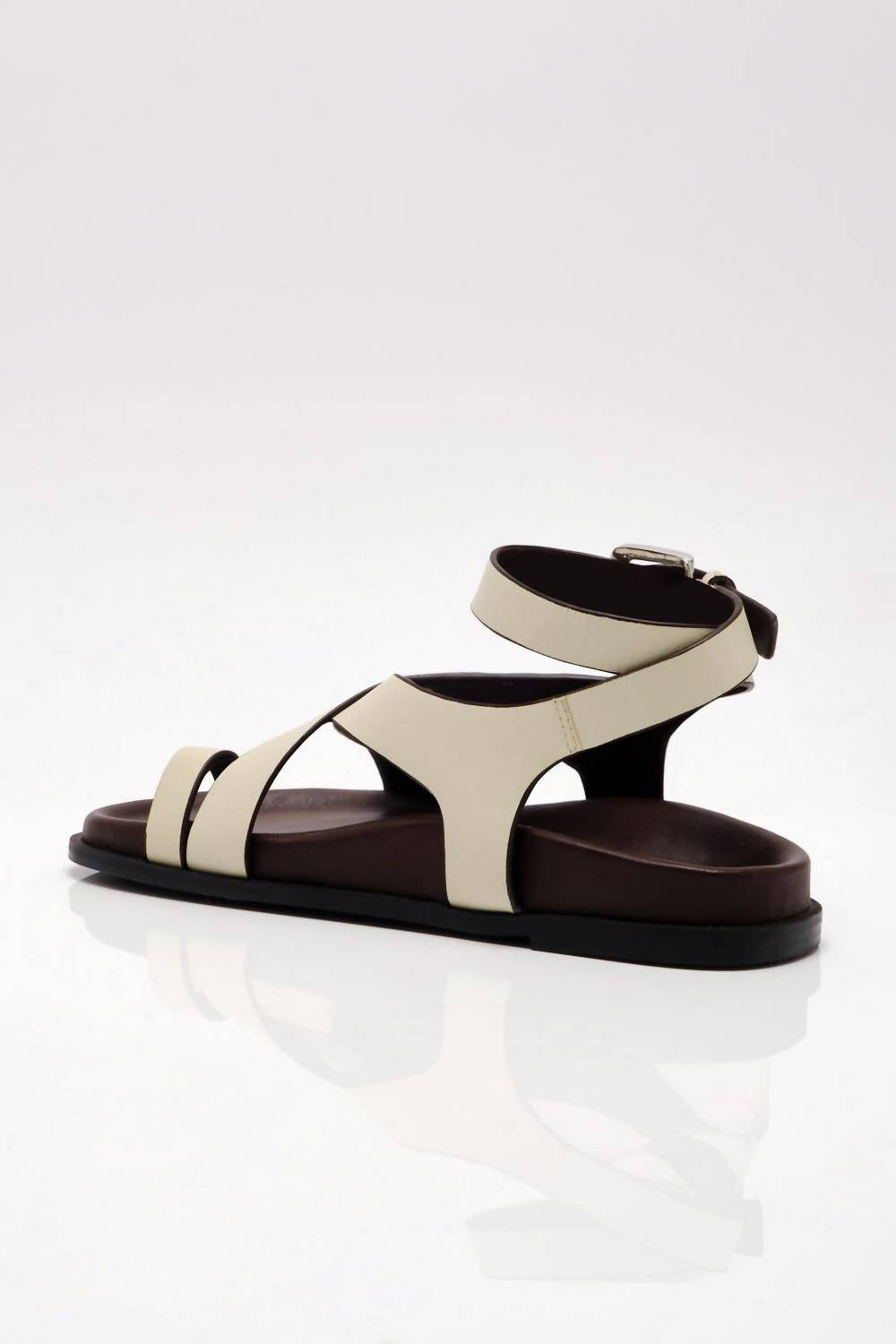 This sandal will take you from brunch to dinner and everything in between. Elevate your summer style with the Anya Criss Cross Footbed Sandals by Free People in a versatile ecru hue. Featuring leather uppers and criss-cross straps, these sandals include a secure toe loop and a buckle closure for adjustable fit. Designed with a flat rubber outsole and a stylish flat heel, these sandals are perfect for travel or casual summer outings. Please note, these sandals run small, so consider sizing up if in between sizes.
