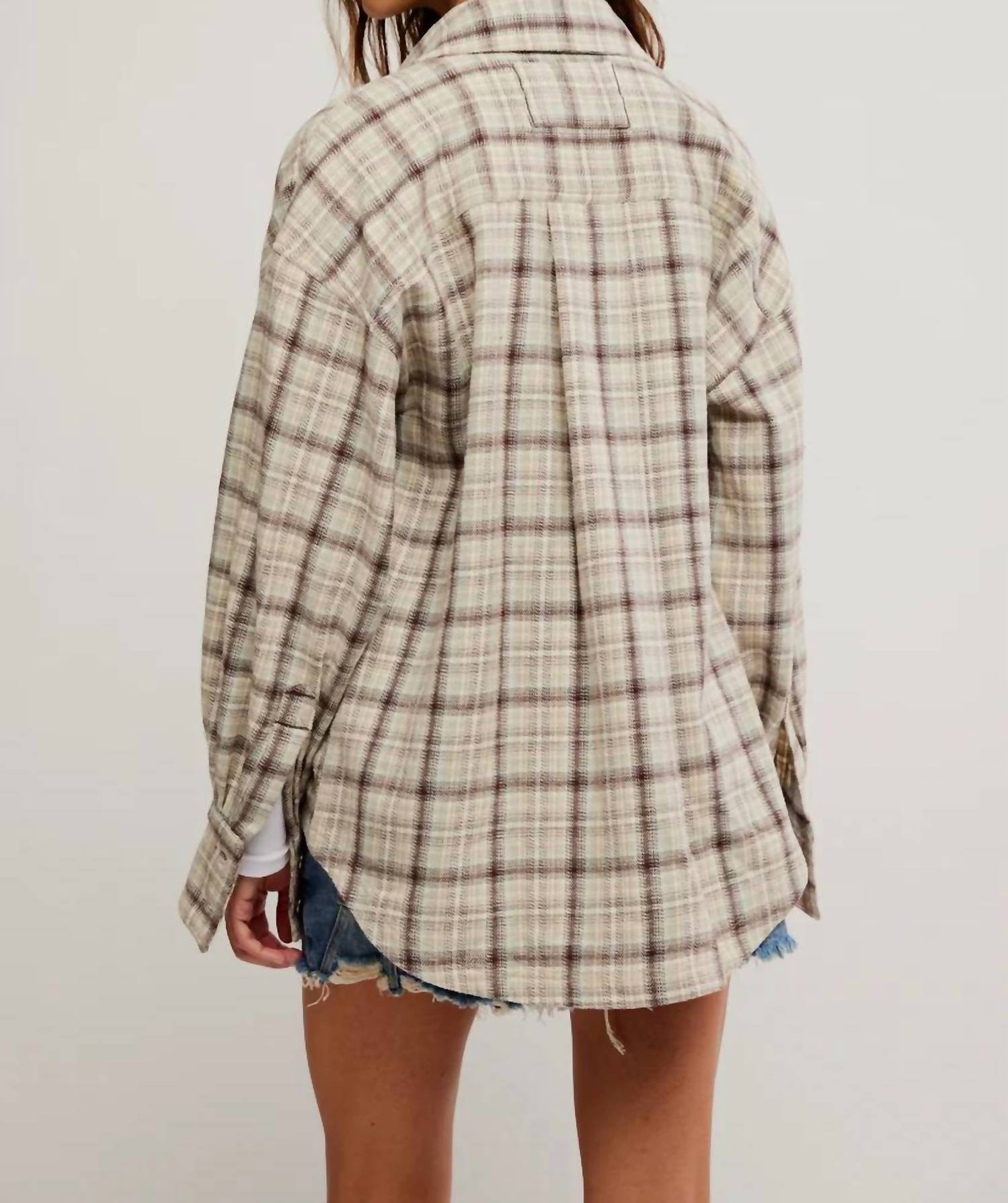 Embrace effortless style, must-have for those seeking both comfort and versatility. Eye-catching multicolor button-down features long drop-shoulder sleeves and a classic collared neckline. Crafted entirely from cotton. Made for layering and can be styled throughout the fall season. Dimensions for size small include a bust of 48 inches and a length of 31.25 inches. Care instructions recommend machine washing cold.