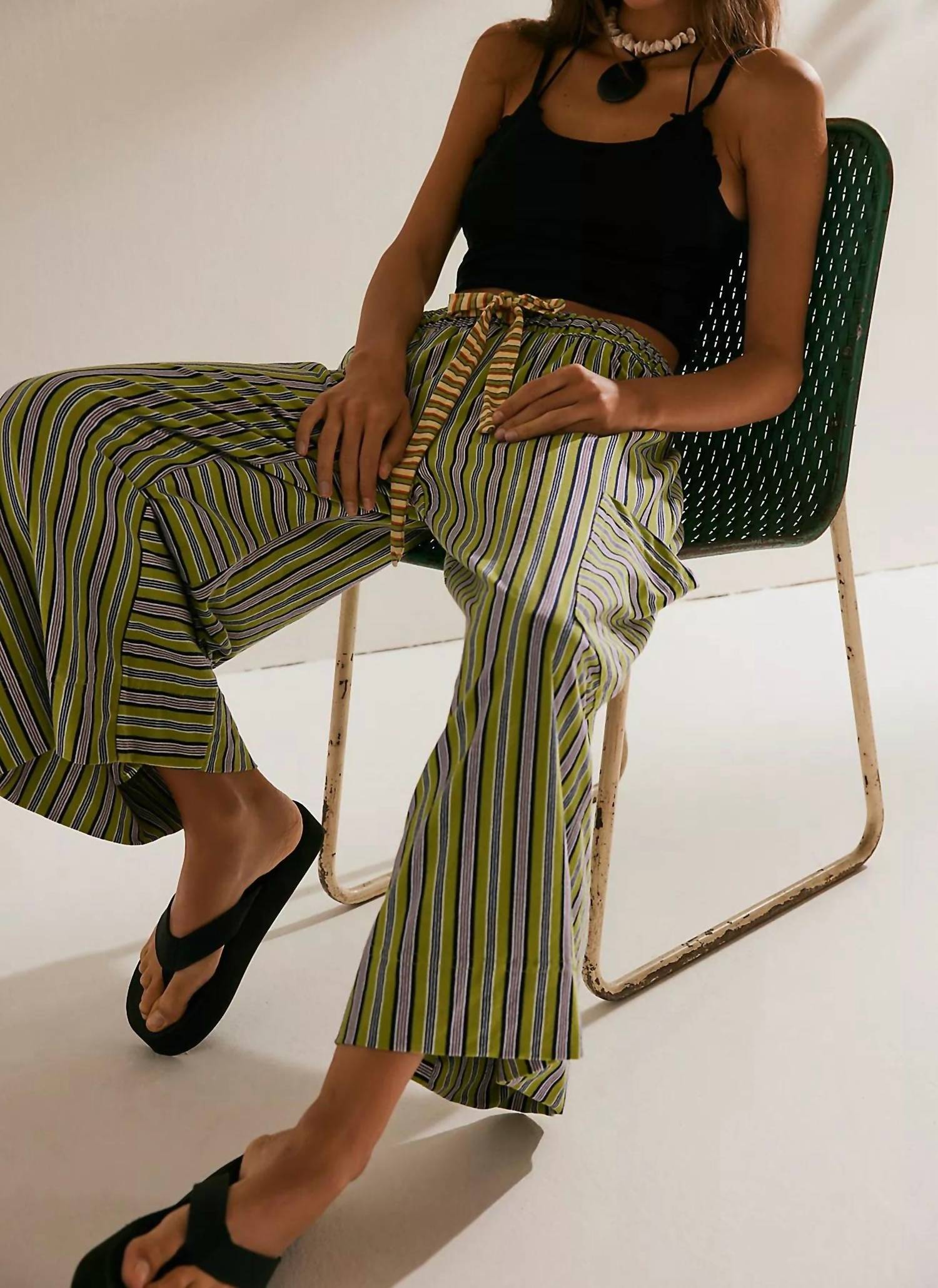 Elevate your summer wardrobe with the Blanche Pants by Free People, part of their Free-est collection in an Original Combo stripe pattern. These mid-rise, wide-leg culottes offer a comfort fit with a pull-on design, drawstring waist, and convenient dropped pockets. Crafted from a cotton blend (44% Cotton, 56% Polyester), they feature a tie closure for easy wear. Care for these resort-ready pants with a machine wash in cold water; they sport a 24-inch inseam and a 47-inch hip measurement for size small.