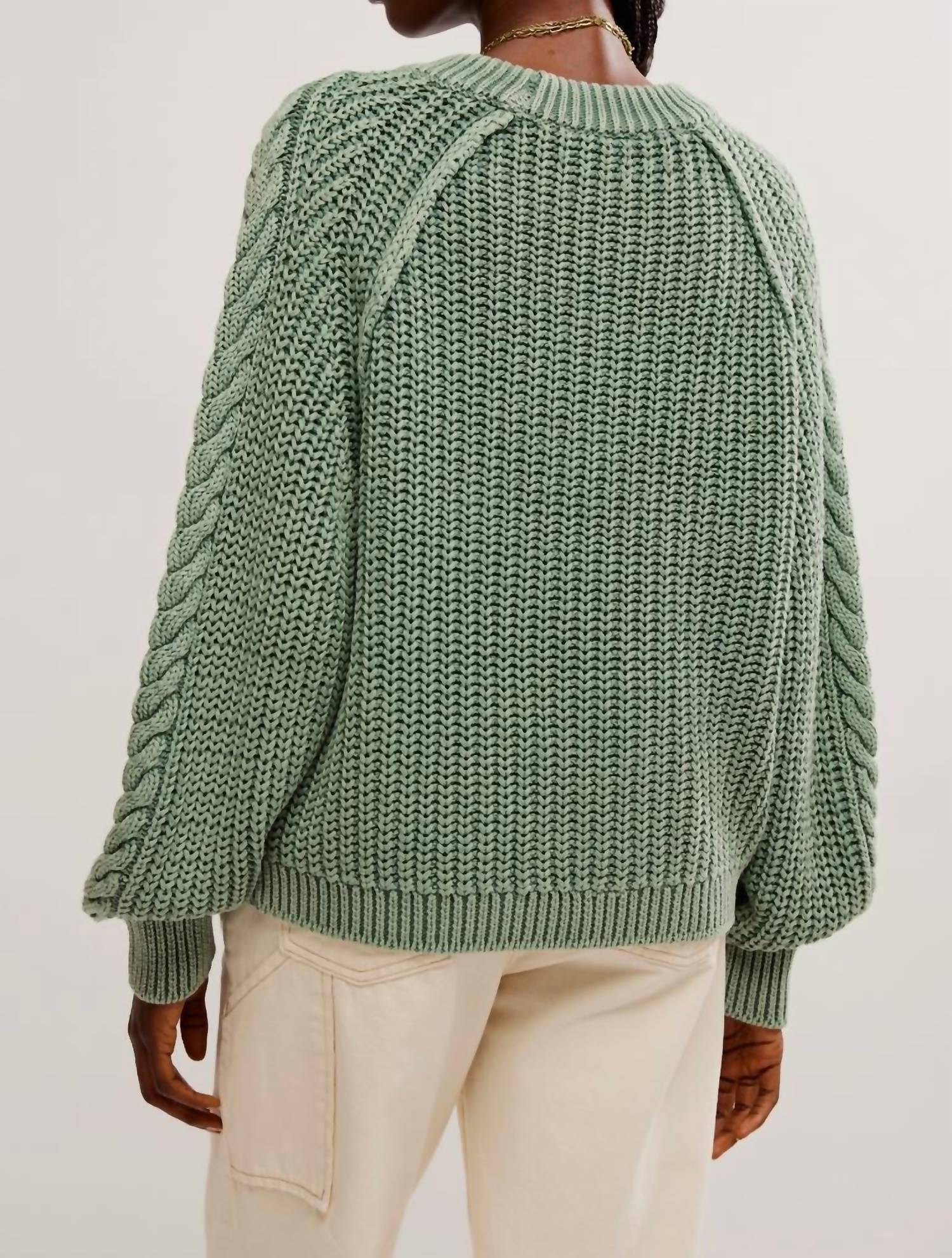 The ultimate go-to sweater, expertly crafted to provide the perfect combination of warmth and style. Its classic design and soft fabric make it a must-have addition to your wardrobe. Discover the Frankie Cable Sweater by Free People, a vacation-ready staple in Sea Spray that exudes classic charm. This long sleeve sweater features a chunky knit with timeless cable detailing for added texture. Made from cotton, it showcases a crewneck and a relaxed, slouchy fit perfect for layering. Closure: Pull-on. Care: Hand wash.