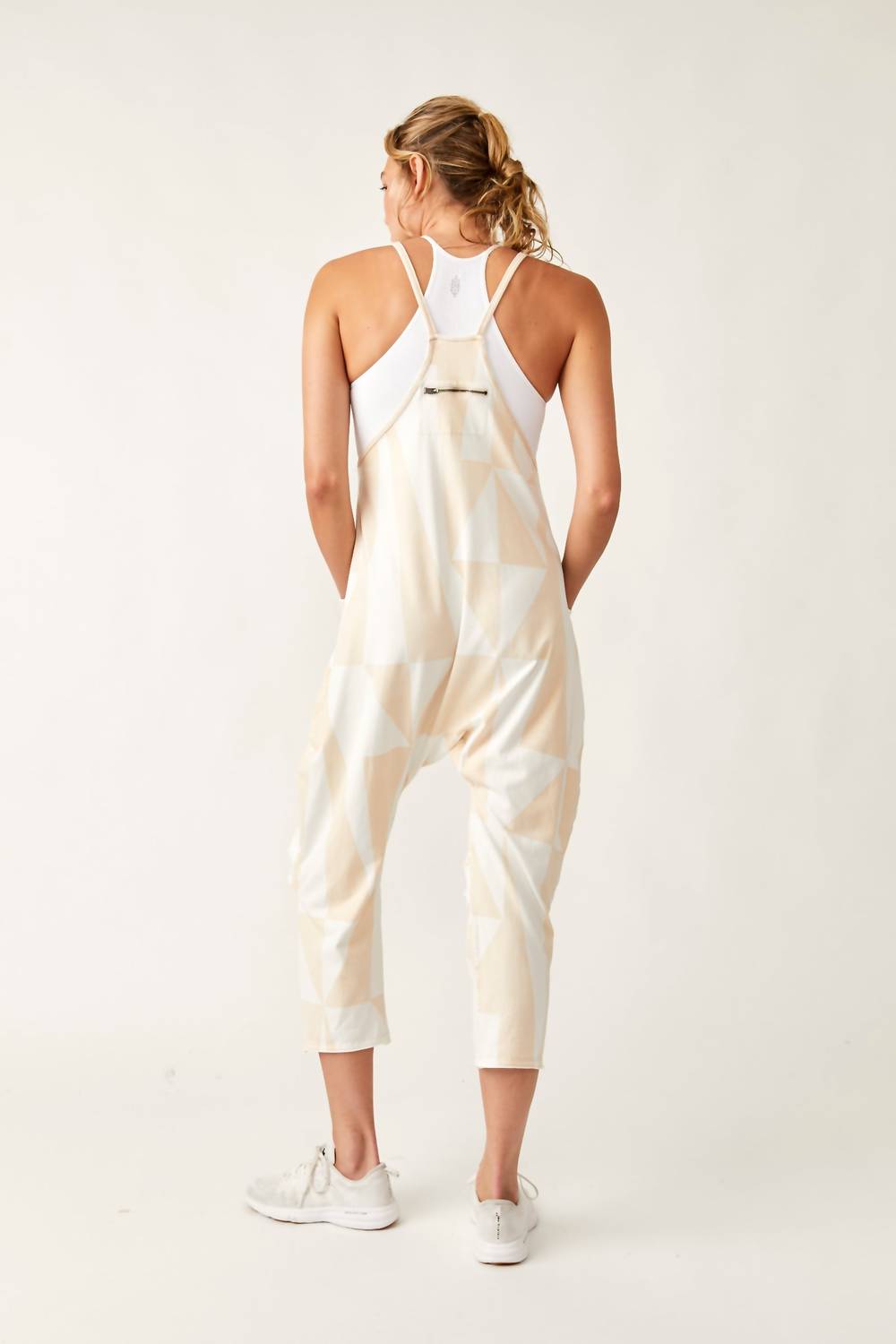 Onesie features a slouchy, relaxed-fitting design and bold printed patterns with a dropped crotch and side pockets. 13.75" Rise. 23.25" Inseam. Machine wash cold. 95% Cotton, 5% Spandex.