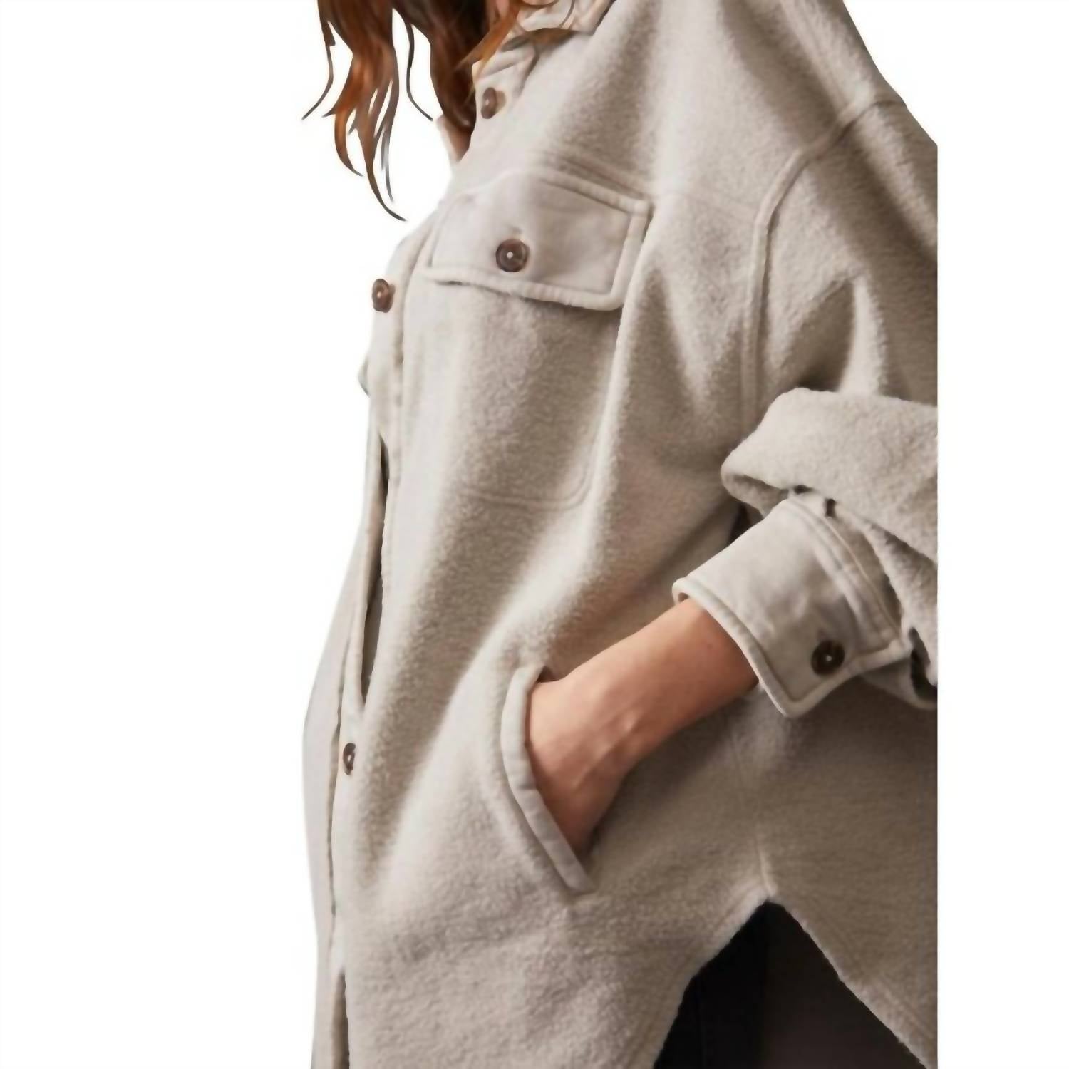 The coolest, most versatile utility jacket. Match it with your favorite pair of denim or throw it over any day dress. Introducing the Ruby Jacket by Free People, a stylish utility jacket in a sophisticated stone hue designed for women. Featuring long sleeves with contemporary elbow patches and a sharp point collar, this jacket showcases a button closure for easy wear. Crafted from a cotton blend—78% cotton, 10% polyester, and 12% viscose—it's both comfortable and durable, complete with unfinished trim for a unique touch. Keep your essentials handy with chest button-flap pockets and front welt pockets. Machine wash.